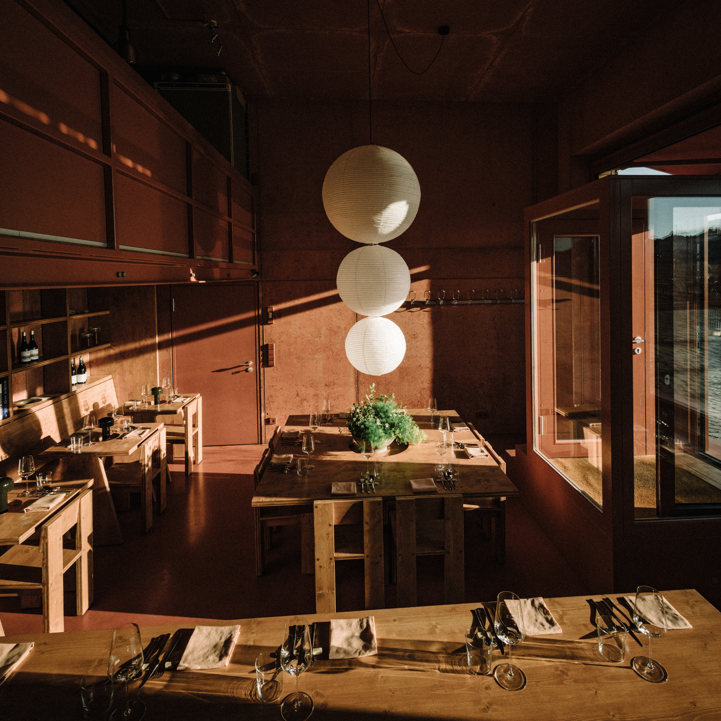 Nomen est omen. Das tonerdenfarbene Rot der Wände im eigentümlich gestalteten Schöneberger Lokdepot lässt einen unmittelbar an einen Spaziergang durch den Wald denken. Die Mitte des größten Tisches, der fast Tafelausmaße hat, ziert tiefgrünes, samtiges Moos und verstärkt den Eindruck eines Ausflugs ins Umland. 20 Personen finden im gut gefüllten Raum einen Platz, das Stimmengebrabbel weckt familiäre Gefühle.