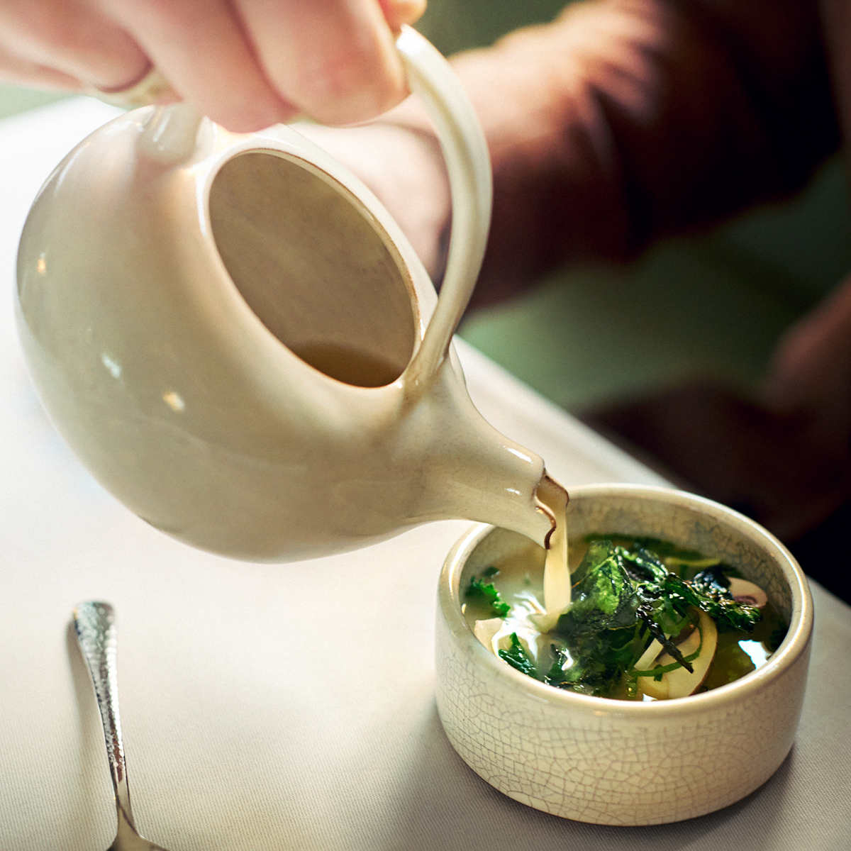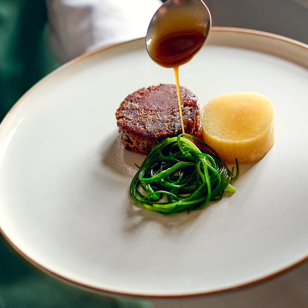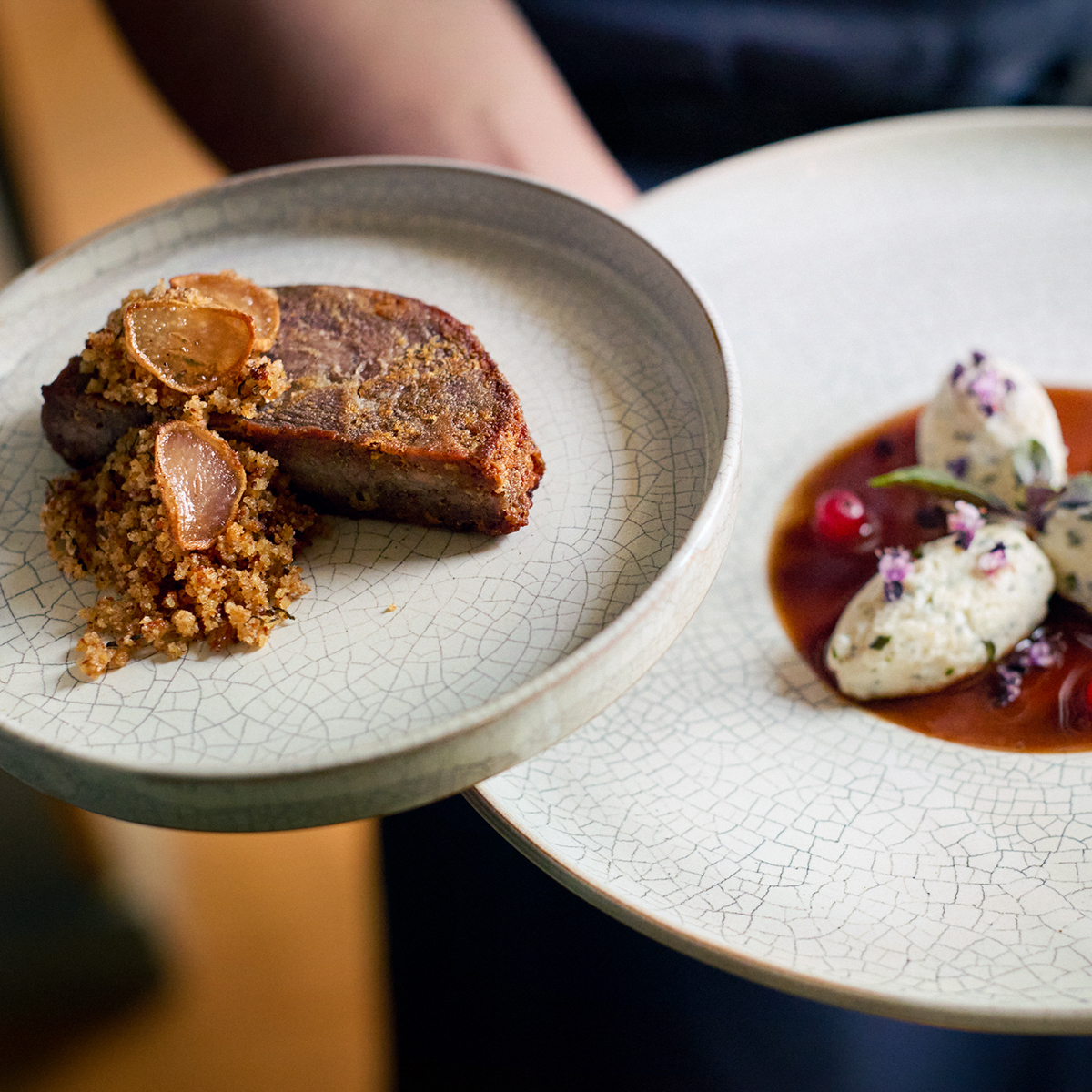 Nahezu alles, was an Obst und Gemüse auf den Tisch kommt, stammt aus dem nahe gelegenen Schlossgarten Petzow. Das sorgt für Vielfalt und mitunter für regional untypische Sorten, denn Hübner kann die Pflanzpläne selbst bestimmen. Aus knallfrischem Gemüse, frischen Kräutern und dem einen oder anderen überraschenden Wildwuchs entstehen so hinreißende Gerichte.