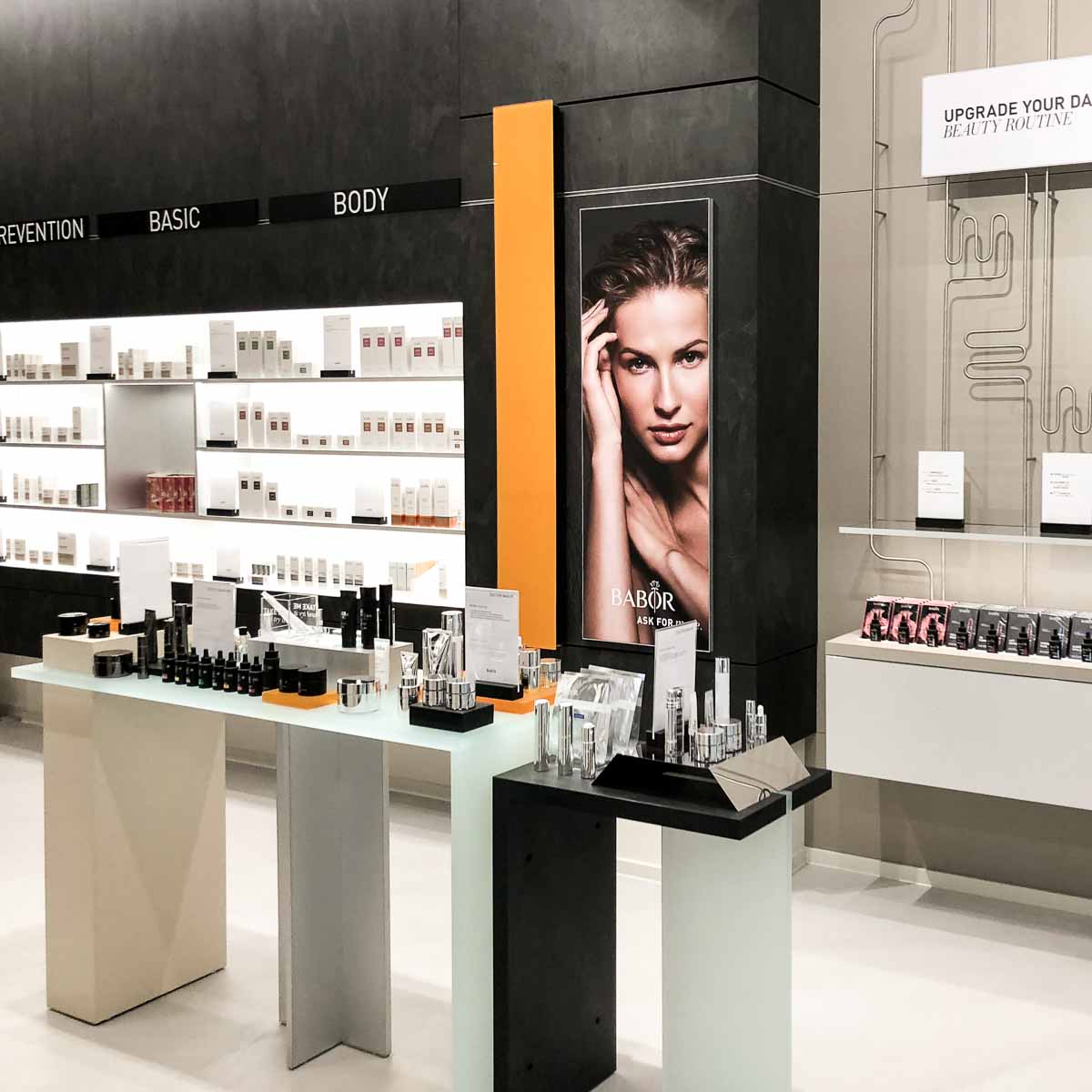 Bekannt ist Babor dabei vor allem für seine Ampullen. Alleine 16 unterschiedliche Wirkstoffkonzentrate für verschiedenste Hautbedürfnisse gibt es aktuell. Daher wird die Haut vor einer Behandlung immer erst ganz genau analysiert, um dann gemeinsam mit dem Kunden eine maßgeschneiderte Behandlungsform oder auch langfristige Behandlungspläne definieren zu können. Teil davon sind dann natürlich auch weitere Produkte von der passenden Reinigung bis zur täglichen Pflege.