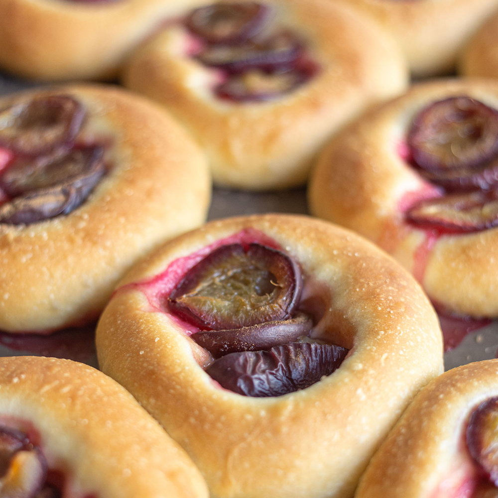 Und dann gibt es da noch La Pompe, ein traditionelles Hefegebäck aus Südfrankreich, das mit Olivenöl zubereitet wird. Aurélie Guyon fertigt es in einer Naturversion und als La Pompe Fruits in zwei saisonal wechselnden Versionen – aktuell sind das Apfel und Pflaume. Es gibt wunderbar duftende Zimtschnecken und Brioche, gefüllt mit Karamell und Apfel.
