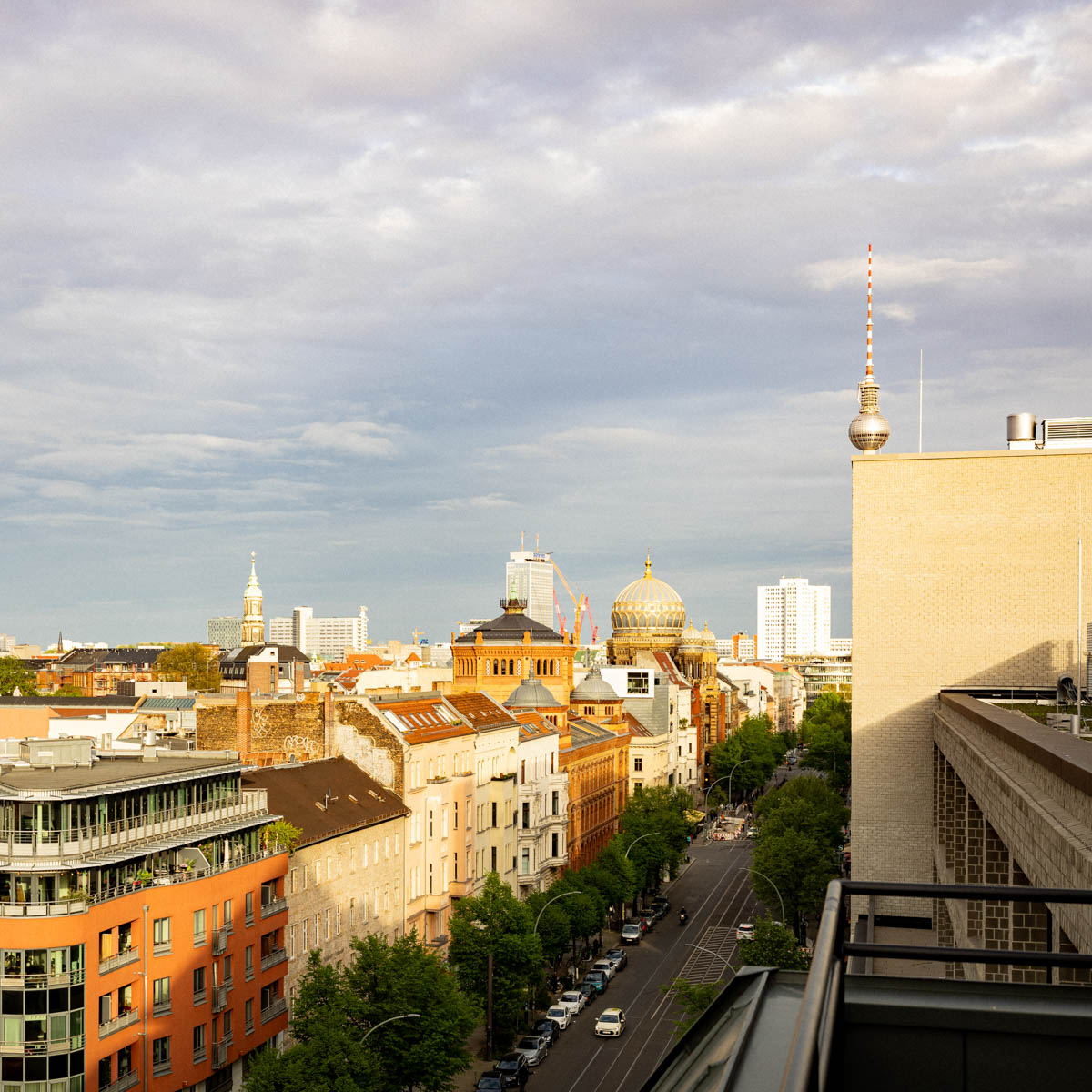 Was neben dem Interieur des Berliner Designers Werner Aisslinger, zumindest während der Sommermonate, noch mehr Gäste locken dürfte, ist die Terrasse der Bar Clara, hat man von hier oben doch einen fantastischen Blick über die Oranienburgerstraße bis hin zur golden glänzenden Kuppel der Synagoge, aber auch über den Westen und Norden der Stadt. Die Rooftop Bar ist der perfekte Ort für einen Sundowner!