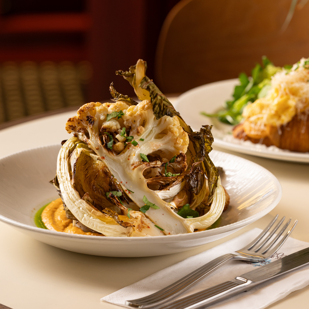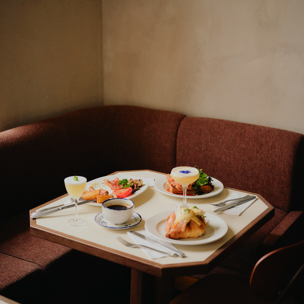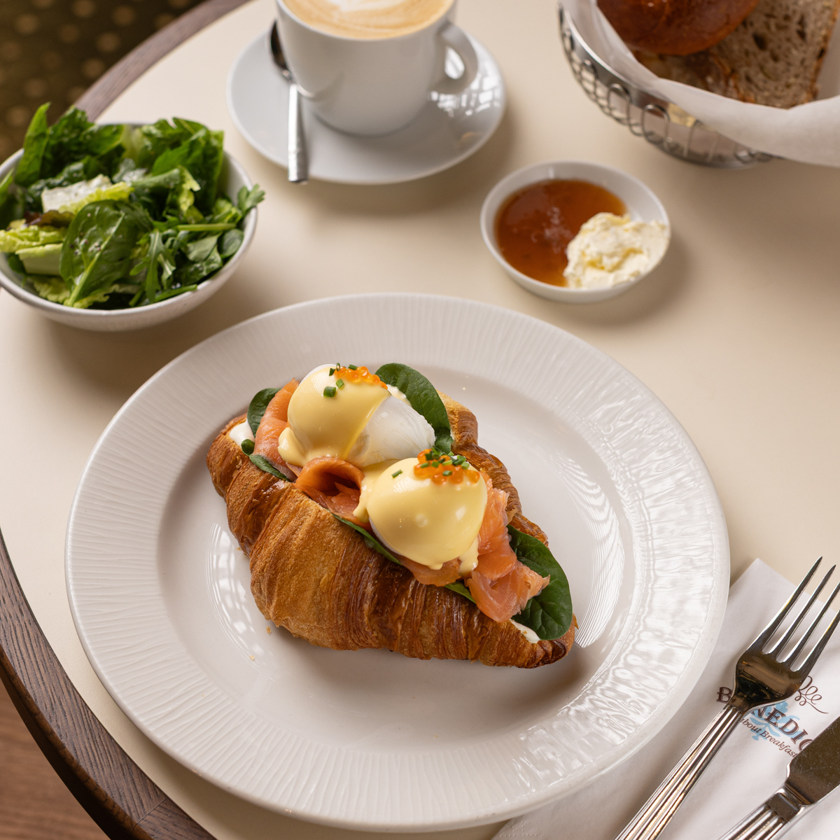 Der Duft von frisch gebackenem ist entsprechend allgegenwärtig und macht Appetit. Auf der Karte zeigt sich das Benedict weiterhin mit großer, internationaler Auswahl. Klassiker wie Eggs Benedict – etwa in der Variante mit Lachs, Avocado oder Pastrami – stehen gleichberechtigt neben üppigeren Gerichten wie Steak & Eggs oder dem „Croissant Royal“ – hausgebacken mit geräuchertem Lachs, Spinat, Meerrettichcreme und Sauce Hollandaise. Keinesfalls entgehen lassen sollte man sich außerdem den gebackenen Blumenkohl!
