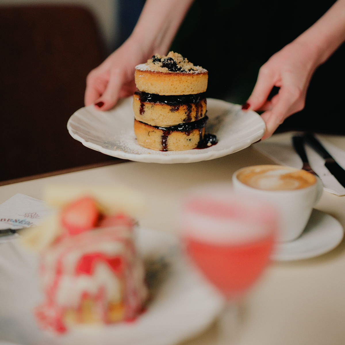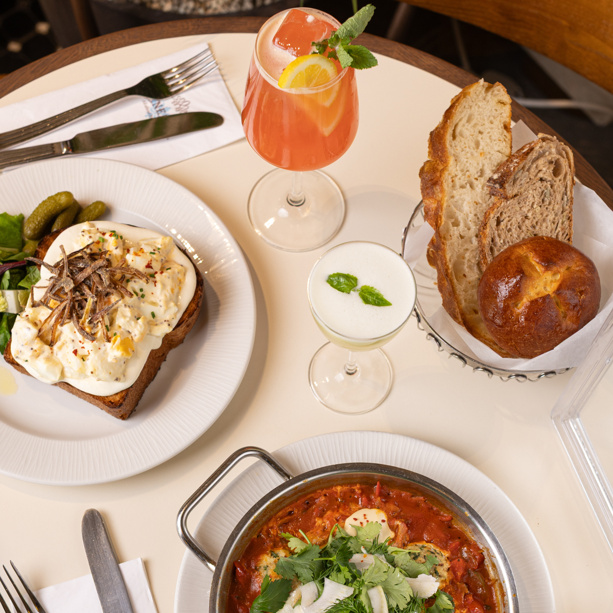 Auch das Sharing-Angebot ist charmant: Shakshuka in verschiedenen Varianten, Sabich mit Aubergine und Ei oder cremiger Hummus mit frischem Brot bringen unterschiedliche Geschmackswelten auf den Tisch. Wer es süß mag, greift zu French Toast oder zu den legendären Pancakes mit verschiedenen Toppings. Ergänzt wird das Angebot durch eine große Auswahl an Kaffee- und Frühstücksgetränken, darunter auch kreative Cocktails.