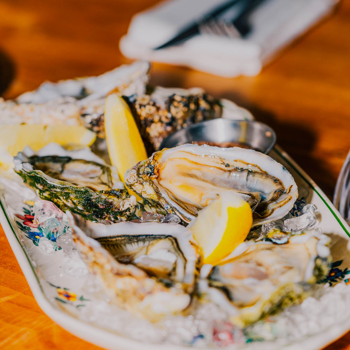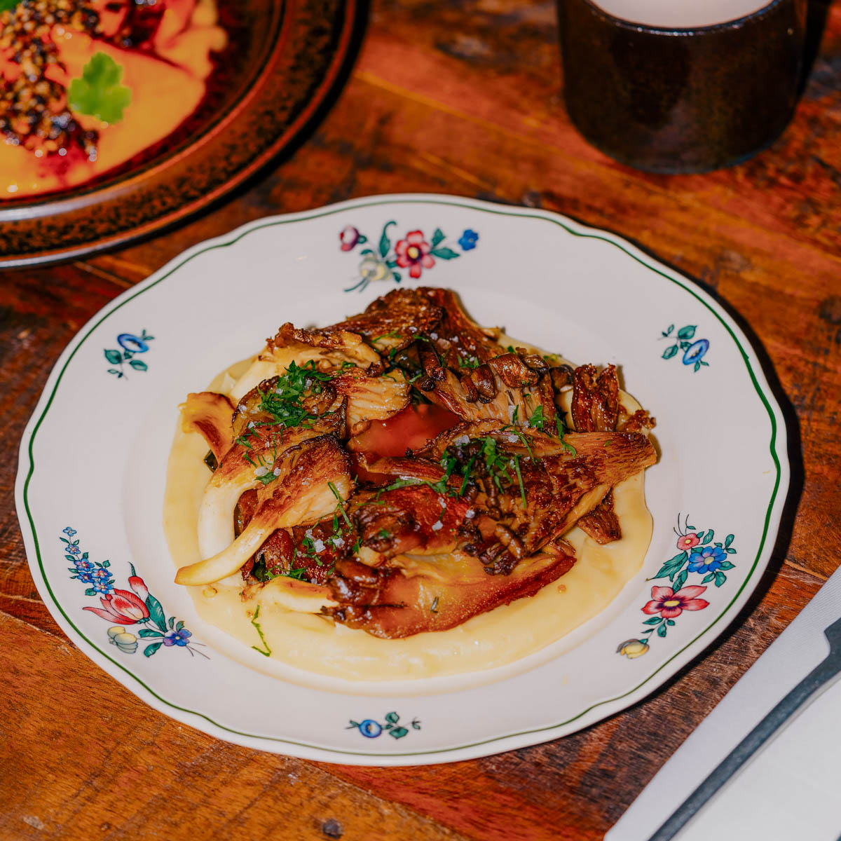 Wunderbar teilen kann man sich aber nicht nur eine Flasche Wein, sondern selbstredend auch das feine Essen: Ein herrlich ausgeführtes Rindstartar etwa, japanisch inspiriertes Lachs Crudo oder cremige Stracciatella mit Cranberries und Nüssen. Kein Schnickschnack, dafür ehrliche, gute Wohlfühlküche. Das gefällt uns ebenso gut, wie die charmant geblümten Teller, die uns an Oma denken lassen.