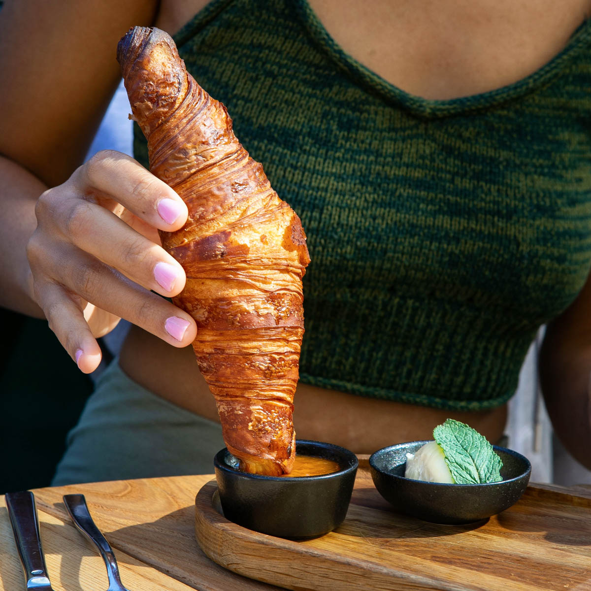 Sukzessive ist das Stichwort. Zwar hat der Brunch nun mit Sophie Yager eine eigene Chefin, diese entwickelt das Angebot zusammen mit dem Brunch Restaurantleiter Paul Carl Stück für Stück weiter, anstatt die Karte komplett umzukrempeln. Die beiden sind gastronomieerfahren – Sophie hat zuletzt im Frea gearbeitet, Paul im Kink – und so vereinen sie ihre Kenntnisse, um den Genuss noch weiter zu steigern.