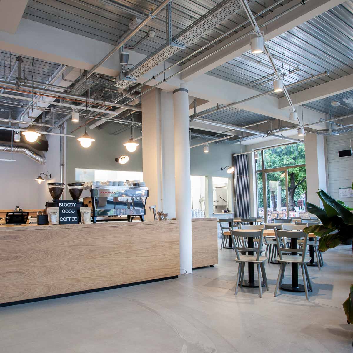 Nur ein Café kann man es allerdings kaum nennen, denn das Konzept ist völlig anders, als man es aus den bisherigen drei Filialen des Friedrichshainer Unternehmens Tres Cabezas kennt. Schon alleine die Größe überrascht, wenn man die lichtdurchfluteten Räumlichkeiten mit großer angrenzender Terrasse betritt. Es ist nicht nur ein Ort für Frühstücksliebhaber, sondern auch für Baristas.