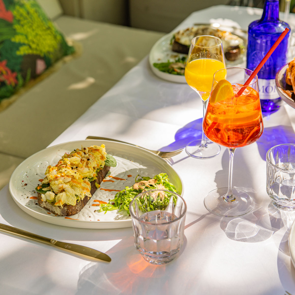 Smoothies und Detox-Säfte machen im Casa Bellucci den Anfang. Die Wahl fällt auf den „Beeren-Bananen-Smoothie“ mit Hafermilch und Medjool-Datteln. Köstlich! Wir übergehen die Eggs Benedict, hier serviert mit geräuchertem Lachs, einer Champagner-Hollandaise, jungem Spinat, rosa Pfeffer und Sriracha-Mayonnaise. Wer mag, pimpt mit Trüffel oder Kaviar.