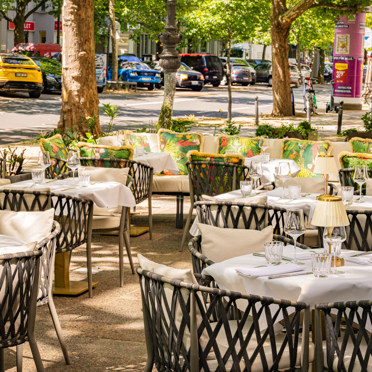 Ein schattiger Platz unter Platanen ist der perfekte Ort, um in einen heißen, spätsommerlichen Tag zu starten. Direkt am Kurfürstendamm hat das ein ganz besonderes Flair. Wir jedenfalls hatten vorher noch nie an Berlins Flaniermeile Nummer eins gefrühstückt. „Hat was“, konstatieren wir. Der Iced Coffee steht schnell auf dem Tisch, und wir vertiefen uns in die Karte.
