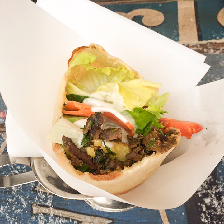 Auch wie die Zutaten auf dem Teller angerichtet werden, wenn man die Falafel nicht aus der Hand isst, erinnert mehr an gehobene Gastronomie als an einen Imbiss. Wer es im Übrigen nicht vegetarisch braucht, der bekommt die Fladenbrote auch mit Fleisch gefüllt.