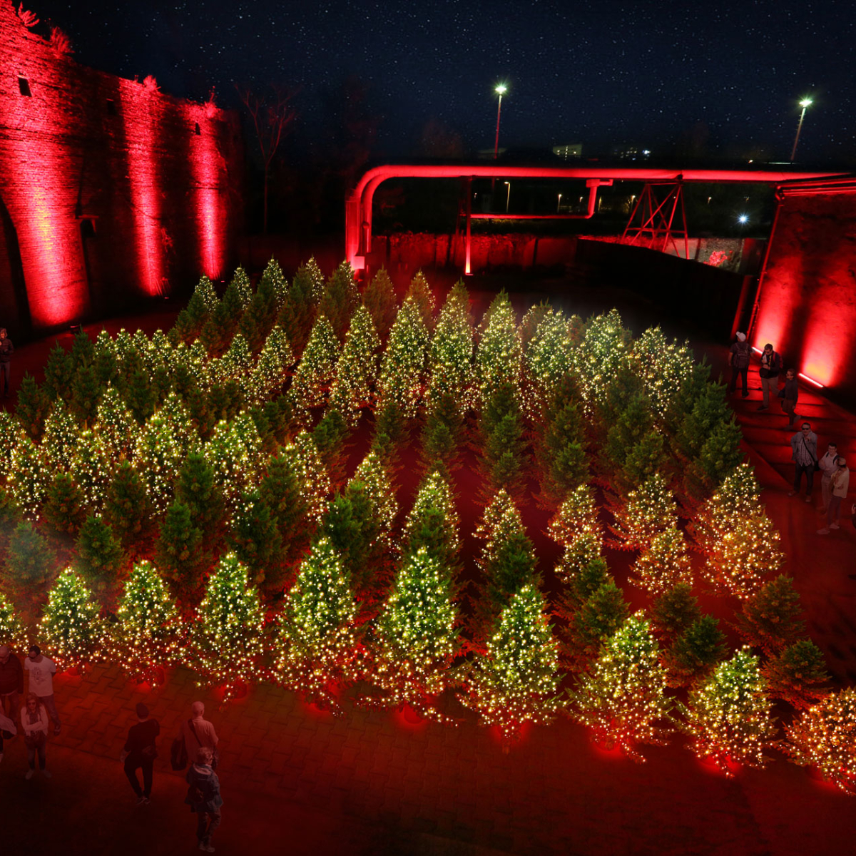Auf 1000 qm kann man sich ohne Probleme gut verteilen und sich durch die insgesamt 200 wellenförmig angeordneten Tannenbäume, deren Lichterglanz dank 80.000 LEDs garantiert den Winterblues vertreibt, treiben lassen.
