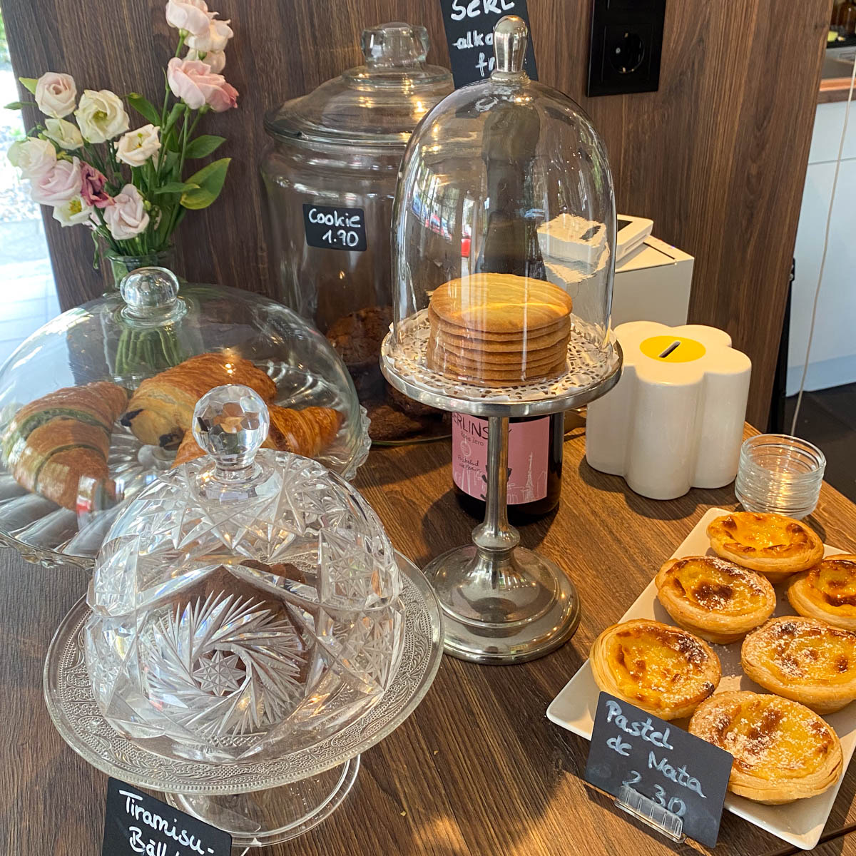 Seit knapp drei Monaten werden im Café DeBatchi nun jeden Morgen vor Ort frische Kuchen gebacken, Aufstriche vorbereitet und im Garten alles hergerichtet. Ab 10 Uhr stehen dann Käse-, Mandel- und Schokoladenkuchen, Apfel Crumble – à la minute erhitzt und mit Vanillesoße serviert – sowie wechselnde saisonale Kuchen bereit.
