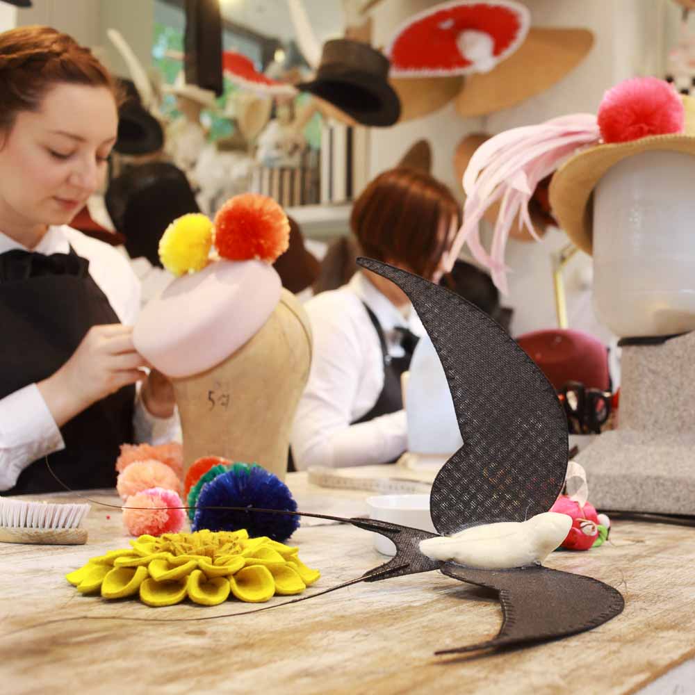 Ihre Kreationen sprühen nur so vor Ideenreichtum und sind genau genommen eher kleine Kunstwerke für den Kopf als schlichte Hüte. Die gebürtige Engländerin lebt seit ihrer Kindheit in Berlin und war eine der ersten, die es nach der Wende in den Bezirk Mitte zog. Hier eröffnete sie 1999 ihren Laden, den sie zunächst gegen ein diskret gelegenes Atelier in der Alten Schönhauser eintauschte, bevor sie das heutige Geschäft an der Potsdamer Straße bezog.