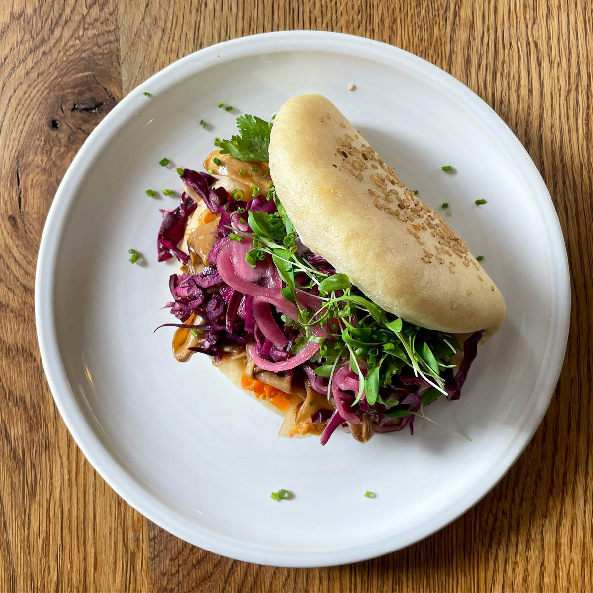 Im dazugehörigen Café werden neben den frischen Backwaren auch belegte Sauerteigbrote und Frühstücksklassiker wie Rührei, Pancakes und Granola serviert. Mittags gibt es frisch zubereitete, saisonal wechselnde Gerichte vom Eintopf über Pasta bis zu Salaten. Der Kombucha, der neben einem klassischen Getränkeangebot auf der Karte steht, ist hausgemacht.