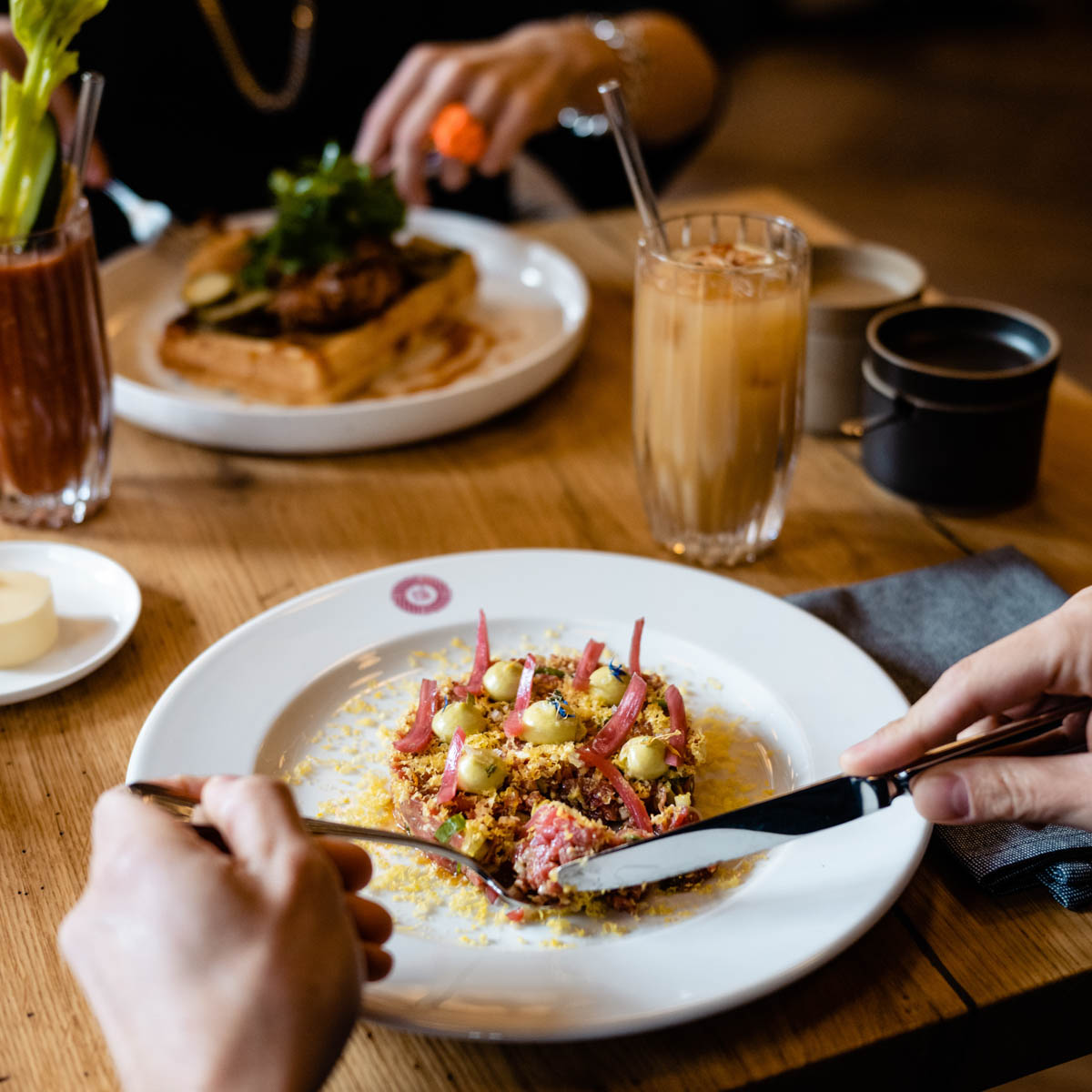 Darauf noch eine Bloody Mary. Oder doch lieber einen Coffee Infused Negroni? Denn ebenso gnadenlos gut wie die Speisen sind die Drinks. Wem Alkohol zur ersten Mahlzeit des Tages etwas auf den Magen schlägt, findet gleichermaßen geniale hausgemachte Limos, Smoothies und natürlich Kaffee- und Tee-Spezialitäten.