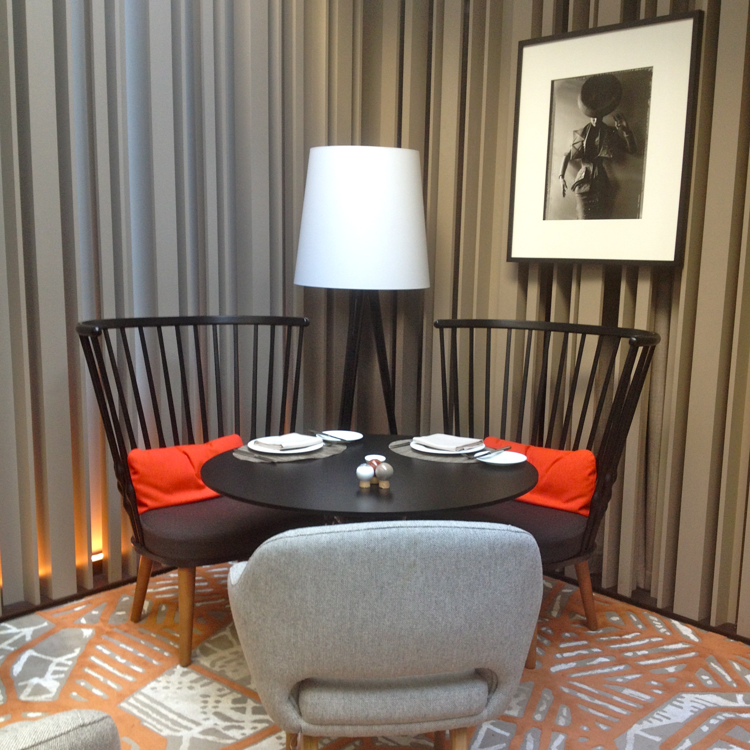 Beschaulich geht es zu im Casual Dining Bereich. Das lockere Ambiente, das die Designerin Patricia Urquiola gestaltet hat, lädt zum Verweilen ein. Hinter hölzernen Lamellen verbergen sich eine elegante Showküche und ein Buffet, dass sich eigentlich nicht zu verstecken bräuchte.
