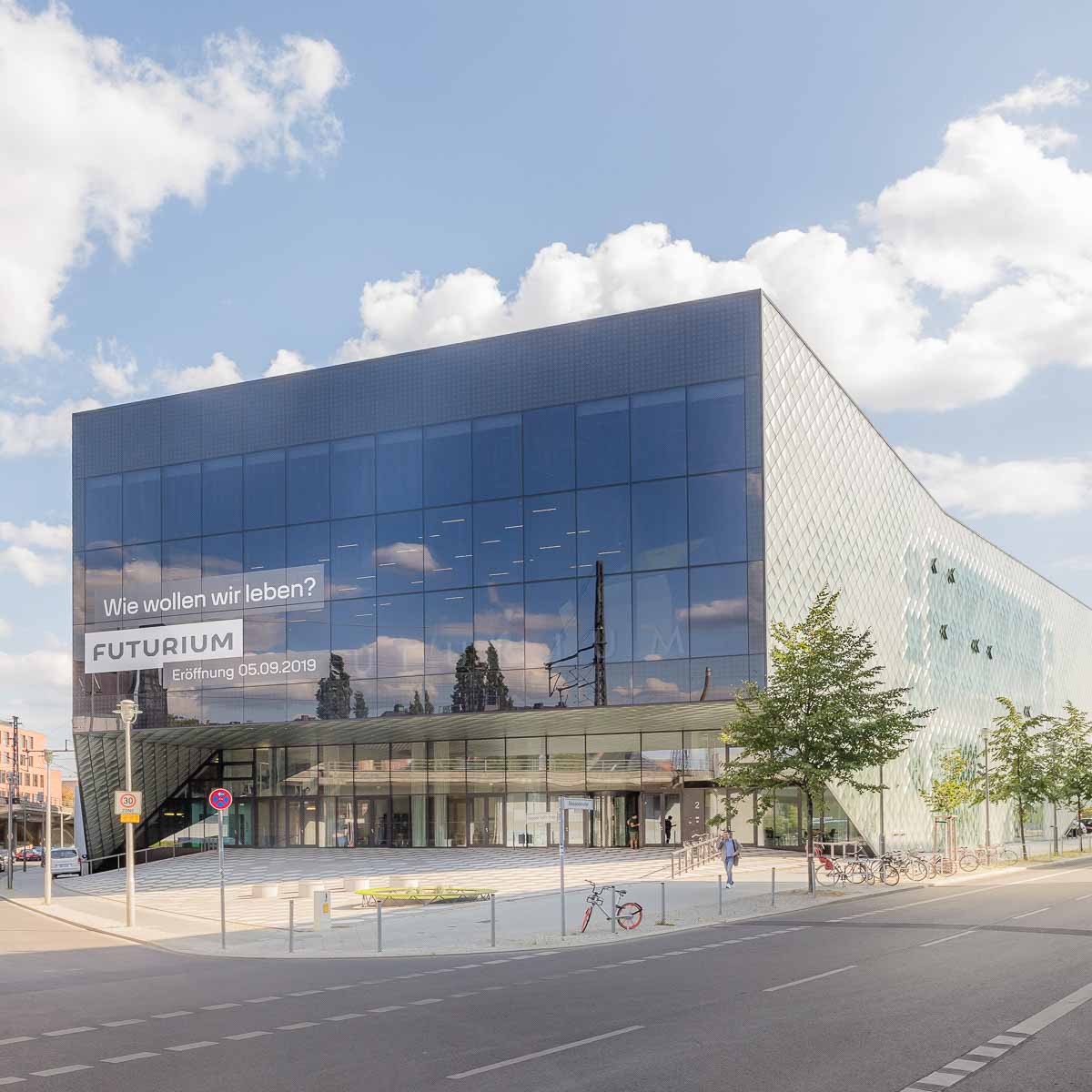 Im Auftrag des Bundesministeriums für Bildung und Forschung wurde das imposante Gebäude vom Architekturbüro Richter Musikowski Architekten in Zusammenarbeit mit den Landschaftsarchitekten JUCA geplant. Auf über 3.000 qm werden darin nun Zukunftsideen erlebbar gemacht. Die Ausstellung zeigt unterschiedliche Visionen und Besucher können in Denkräumen spannende Zukunftsoptionen entdecken und dabei eine eigene Haltung zu umstrittenen Themen entwickeln.