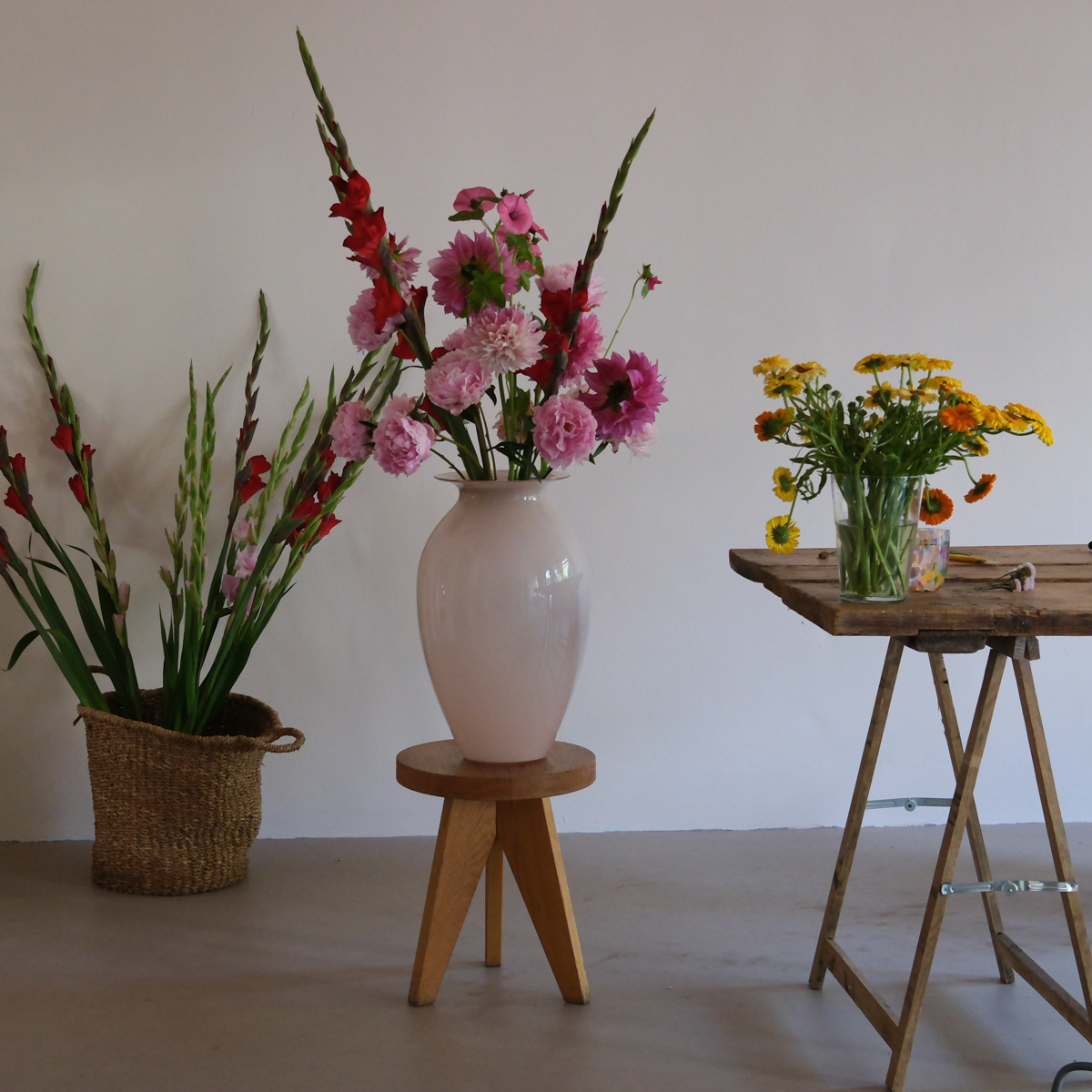 Wir selbst haben im vergangenen Winter bereits begeistert an einem Adventskranz Workshop teilgenommen. Doch nun im Sommer genießen wir den alten Charme des neuen Ateliers, bewundern ungewöhnliche Blüten und eine handverlesene Auswahl an Vasen. Derweil lässt Luisa Hoffmann in meditativer Ruhe aus einer Vielzahl an Blüten ein irreschönes Bouquet entstehen. – Ein Ort wie aus der Zeit gefallen!