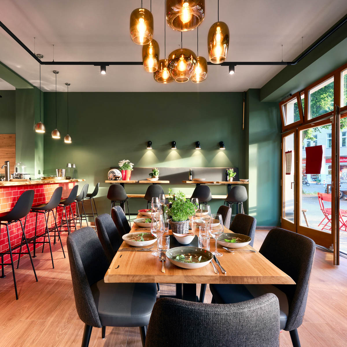 Seit Frank Gebauer und sein Team am 6. August zum ersten Mal die Tür der Tagesbar geöffnet haben, ist kontinuierlich Betrieb. Als habe Schmargendorf nur auf ihn gewartet, strömen die Gäste herbei, um die alpin inspirierte Küche oder einfach nur ein Glas Südtiroler Wein zu genießen. Für Gebauer ist damit ein lang gehegter Traum in Erfüllung gegangen.