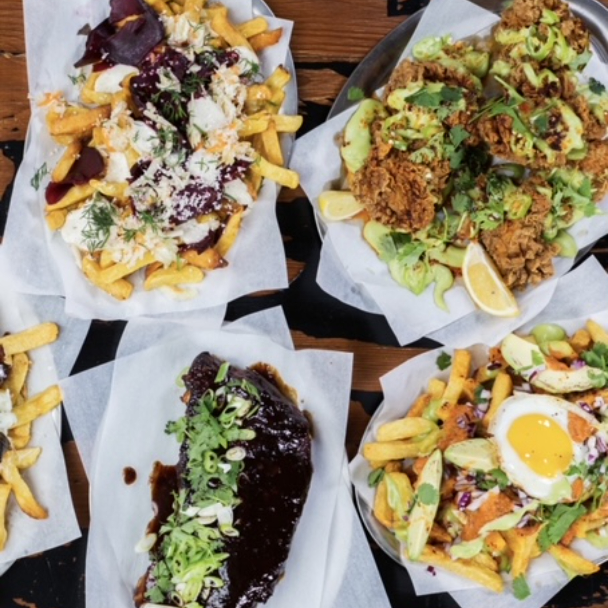 Das Goldies in Berlin-Kreuzberg ist offenkundig kein Geheimtipp und doch kommt es uns plötzlich so vor, als hätten wir vorher noch nie attraktivere Pommes Frites gesehen oder gegessen. Wirft man dann einen Blick auf die umfangreiche Karte, hat man wirklich nicht den Eindruck, in einer Pommesbude zu sein. Kimchi Fusion, Peking Ente, El Gringo Loco oder Honeybutter Chicken? Das Goldies hat allerdings weitaus mehr zu bieten als frittierte Kartoffeln und Burger mit sexy Namen.