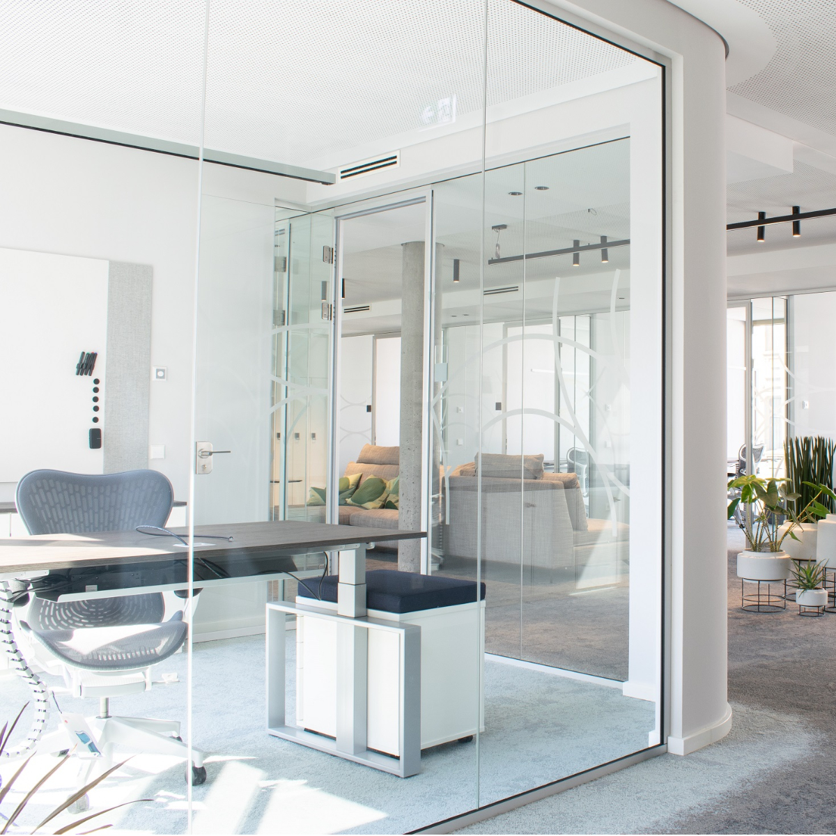 Angenehm, modern und designlastig ist nicht nur die Community-Area. Auch die voll ausgestatteten Einzelbüros in den oberen Etagen, sowie die vielseitigen und agilen Konferenzräume funktionieren nach diesem Muster: Form und Funktion gehen Hand in Hand, beides ist durchdacht bis ins letzte Detail. Da wäre zum einen die State of the Art-Technologie und der Ready-to-use Ansatz aller Technik, sowohl in den Einzelbüros, als auch im Meeting- und Veranstaltungsbereich.