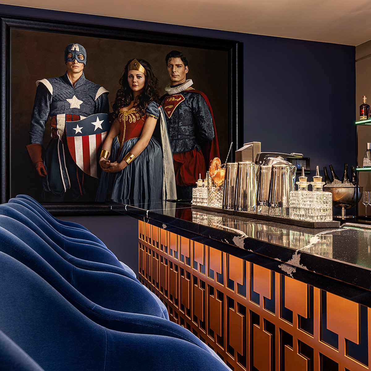 Die Atmosphäre ist dank vieler indirekter Lichtquellen, dunklem Holz sowie Samtmöbeln und Kupferelemente gemütlich und entspannt. Dabei wird die Pracht der Vergangenheit mit dem Minimalismus der Gegenwart zu etwas einzigartig Neuem kombiniert. Wie auch im Restaurant, folgt die Bar ganz dem Motto des Heritage: Neues im Altbekannten zu finden. Und so finden sich auf der Karte neben den Klassikern, vor allem auch eigene Kreationen, die die Auswahl zwar schwer, den Abend aber umso lustiger machen.