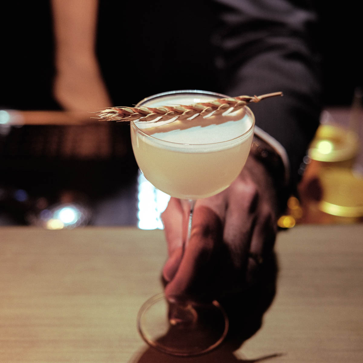Großartig auch der „Kyoto x Pandan“: Etwas heller als der Whisky, sehr reduziert mit einem Pandan Blatt, einem Palmenblatt, das mit Bourbon, Matcha, Kaffirlimettenblättern und geklärter Hafermilch eine vanillig-karamellige Gaumenummantelung schafft. Nicht aufdringlich, im Gegenteil, subtil, harmonisch und ungemein komplex.