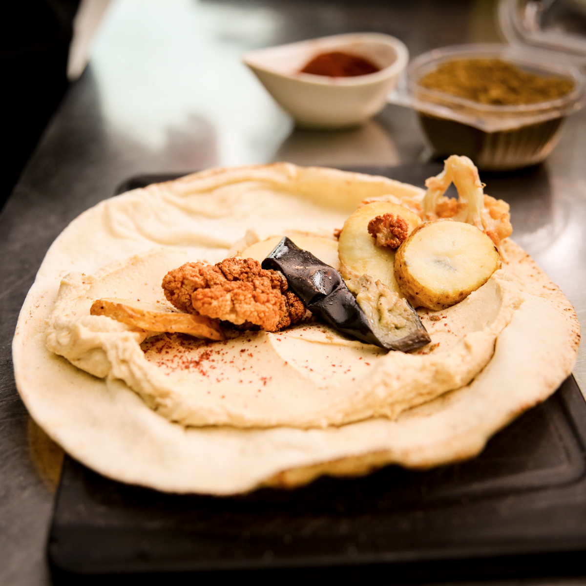 Alle Gerichte sind vegetarisch oder vegan und hervorragend zum Mitnehmen geeignet – perfekt für eine kurze Mittagspause oder aber zum Liefern. Deshalb gibt es im Himmel 8 auch weniger Sitzplätze, was das Ganze jedoch nicht minder köstlich macht, immerhin werden Hummus, Babaganoush, Mtabal und Kishke im Schwesternrestraunt Kreuzberger Himmel vorbereitet. Das gilt auch für die selbstgemachten Süßspeisen – was soll man sagen: himmlisch.