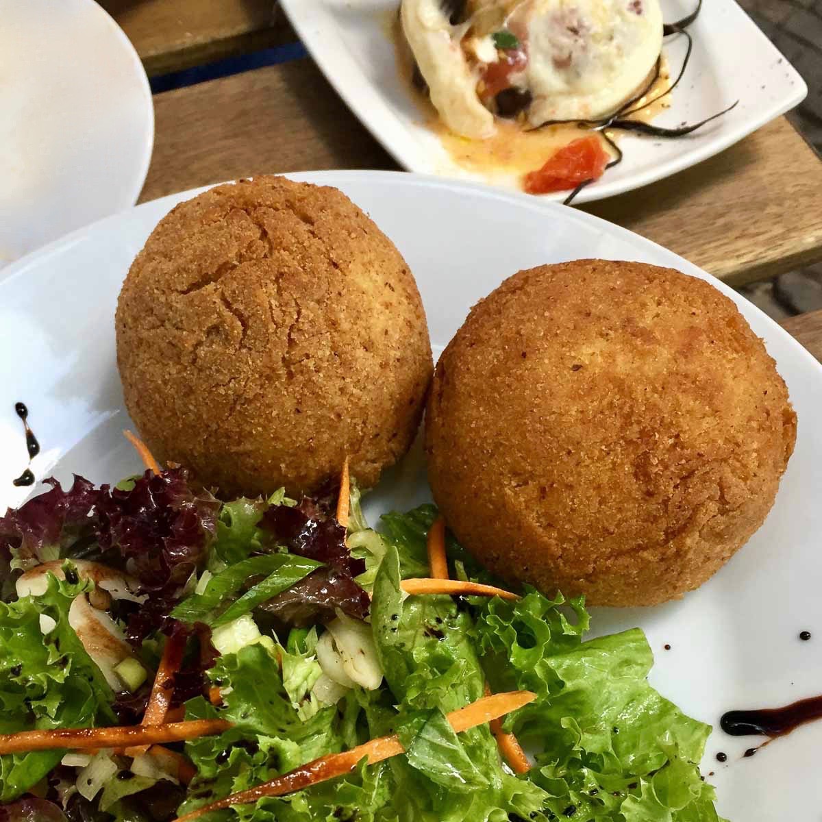 Die Arrancine – große Reiskugeln, die mit Fleisch oder Gemüse gefüllt, in heißem Fett frittiert werden – und die wunderbar aromatische Caponata Siziliana würden uns zum Glück schon genügen. Während die Karte kontinuierlich wechselt, stehen diese beiden Gerichte auch immer auf der Karte. Kein Wunder!