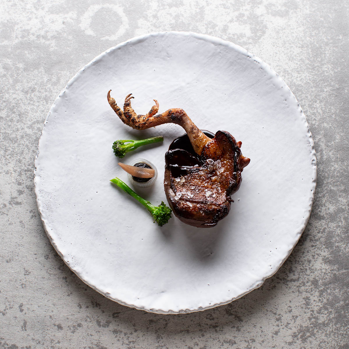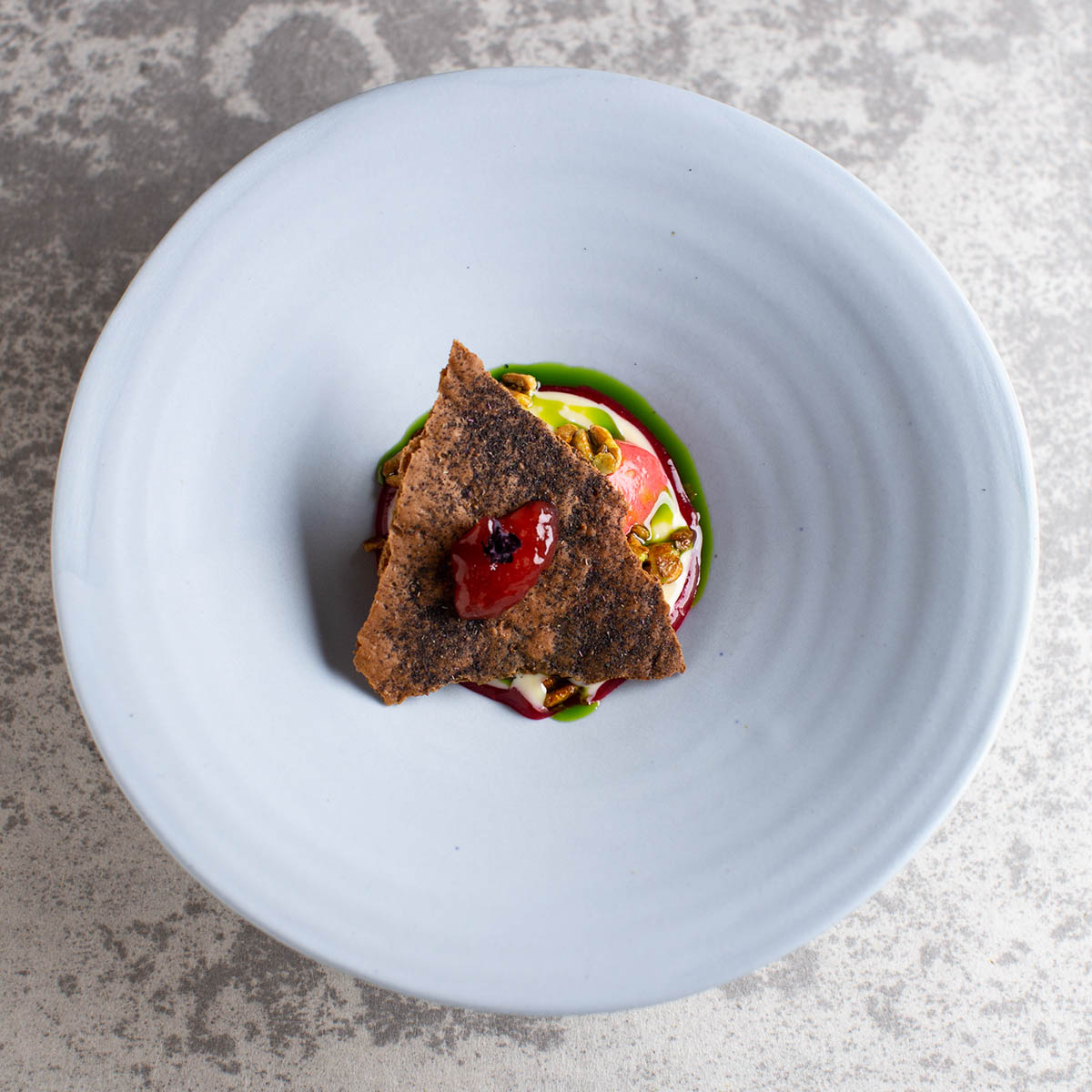 Es folgen Rote- und Gelbe Bete mit Hüttenkäse und Fichtensprossen-Öl. Sommerlich frisch mit säuerlicher Note. Die „Salty Tea Time“ erweist sich vor dem nächsten Gang als eine fantastische Bisque. Der Pulpo wird unter Wildkräutern versteckt mit Rouille und Mango serviert, gefolgt von Maispoularde mit Babyspinat und einer großartigen Hollandaise, für die man sich ein Stück Brot wünscht, um nichts davon zurücklassen zu müssen.