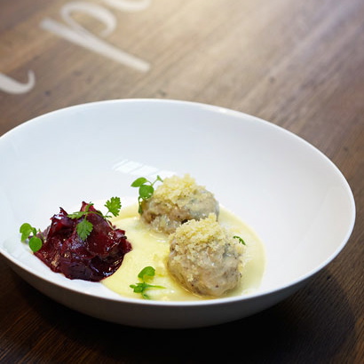 „Königsberger Klopse, Kartoffelpüree und rote Beete“ als auch „Kabeljau an Schmorgurken und Estragon“ folgen als zweiter Gang und veranlassen uns zu weiterem Schwärmen. Beide Gerichte sind geschmacklich sehr fein abgestimmt und insbesondere für die Königsberger Klopse können wir gar nicht genug Superlative finden.