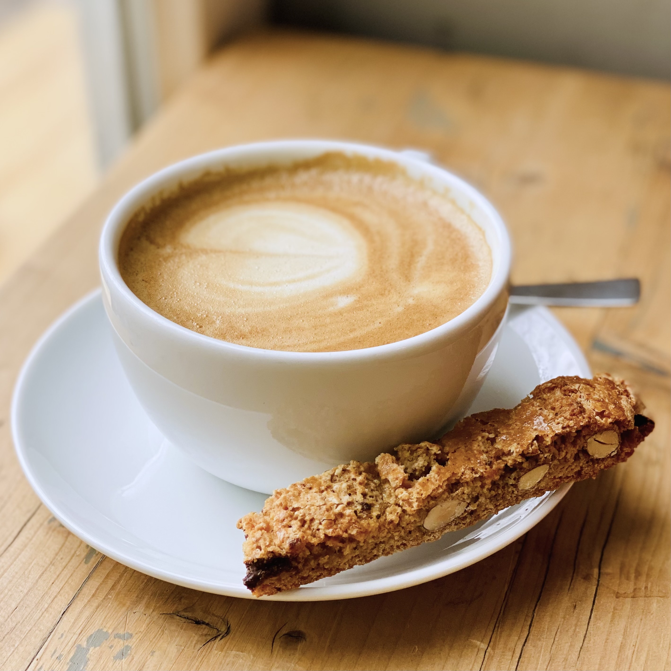 Ständig stehen duftende, frische Kuchen in der Vitrine: vom klassischen Käsekuchen ohne Boden über wechselnde Obstkuchen bis hin zu Cheesecake, Cookies und Cantuccini. Es gibt belegte Bagels – zum Beispiel mit geräuchertem Lachs oder Avocado –, Bircher Müsli sowie Granola mit Kokosjoghurt und frischen Früchten. Eier gibt’s aus dem Glas oder als Rühr- bzw. Spiegelei, serviert mit dicken Toastbrotscheiben.