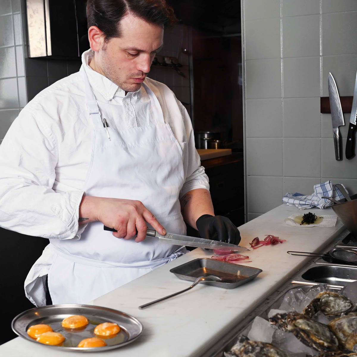 Die Küche des Restaurants Lo Fufu im Hotel Sir Savigny in Charlottenburg vereint italienische Einfachheit mit japanischer Perfektion. Das Interieur ist cool und intim zugleich. An der langen Edelstahltheke, hinter der vor den Augen der Gäste wundervolle Gerichte entstehen, oder in einer der lässigen Sitznischen für zwei kann man herrlich die Zeit vergessen, während im Omakasa-Style edle italienische Küche serviert wird.