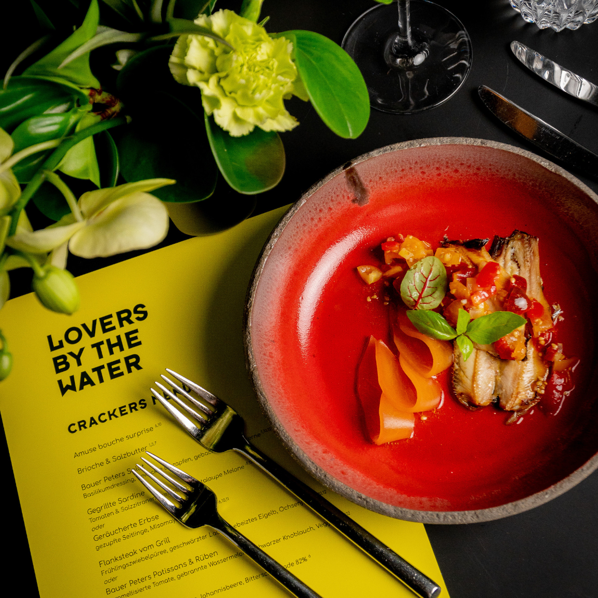 Das Crackers-Team zeichnet sich ohnehin für ein ausgezeichnetes Händchen in Sachen Stimmung aus. Das kredenzte Menü von Küchenchef Patrick Ziegert und seinem Team wird eigens für das Lovers by the Water kreiert, bietet aber wie gewohnt internationale Küche mit unerwartetem Twist.