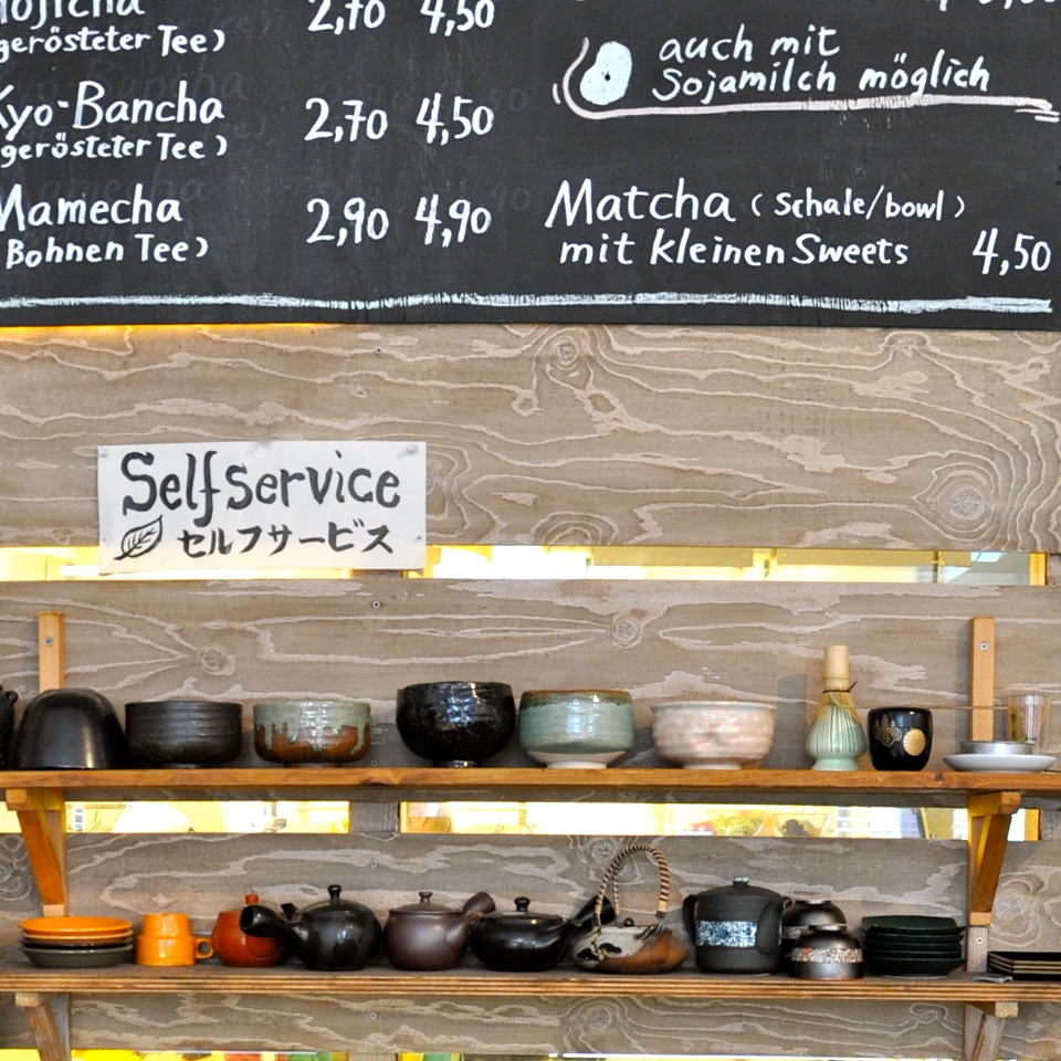 Die Teekarte bietet klassische grüne Tees, aber auch geröstete Sorten, die auf so exotisch klingende Namen wie 'Hojicha' und 'Kyo-Bancha' lauten. In Kombination mit Milch entstehen echte Fusion-Varianten wie Matcha Latte oder Matcha Cappuccino, die schon allein optisch ein Genuss sind. Es gibt Tees mit Ingwer oder Zitronengras, altbekannte Kaffeezubereitungen und kalte Getränke.