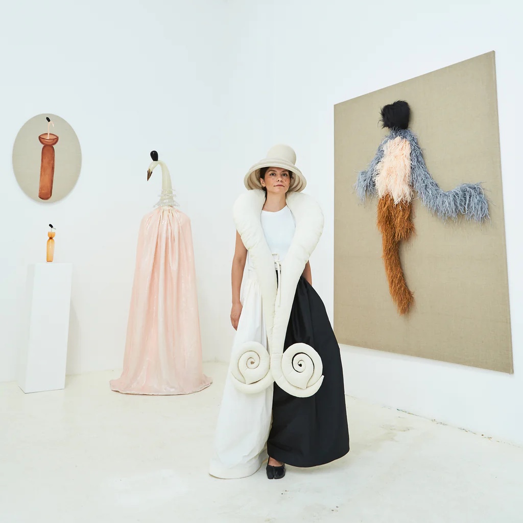Hauptsache Hutsache und mit viel Humor, ein Blick auf ihre Objekte aus textilen Materialien wie Wollfilz zaubert immer auch ein Schmunzeln ins Gesicht der Betrachter*innen. Maryam Keyhani ist eine Art Dompteur in der eigenen Manege, eine Alice im eigenen Wunderland. Wo die Phantasie regiert.