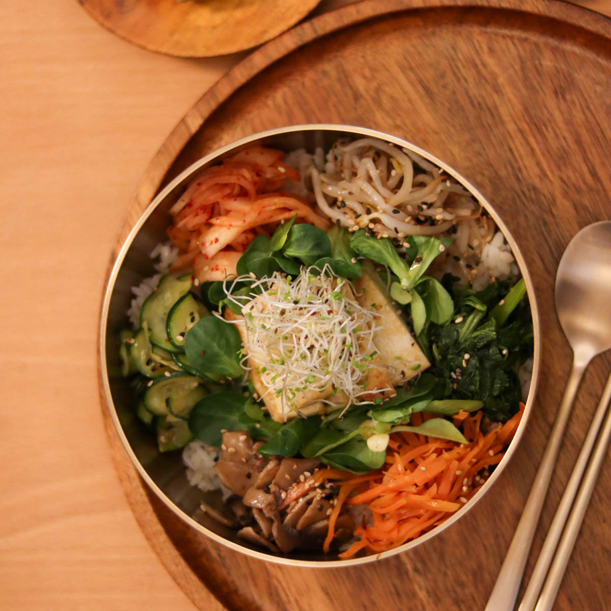 Sowohl die Rollen als auch die Schüsseln gibt es mit scharf eingelegtem Hühnchen (einer unserer Favoriten!) oder Rindfleisch, aber auch mit Fisch oder rein vegetarisch. Sehr empfehlenswert ist zudem das Bibimbap mit roh mariniertem Lachs oder Tofu. Nicht zu vergessen das Gimbap mit Thunfisch.