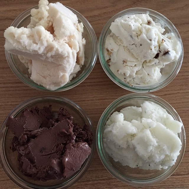 Elf bis zwölf wechselnde Sorten gibt es meist, darunter auch täglich neue Kreationen, denn das Eis wird immer gerade so produziert, wie es die tagesfrischen Zutaten erlauben. Diese kommen gerne aus der Domäne Dahlem oder der Markthalle Neun und sind stets das Beste, was gerade zu bekommen ist.
