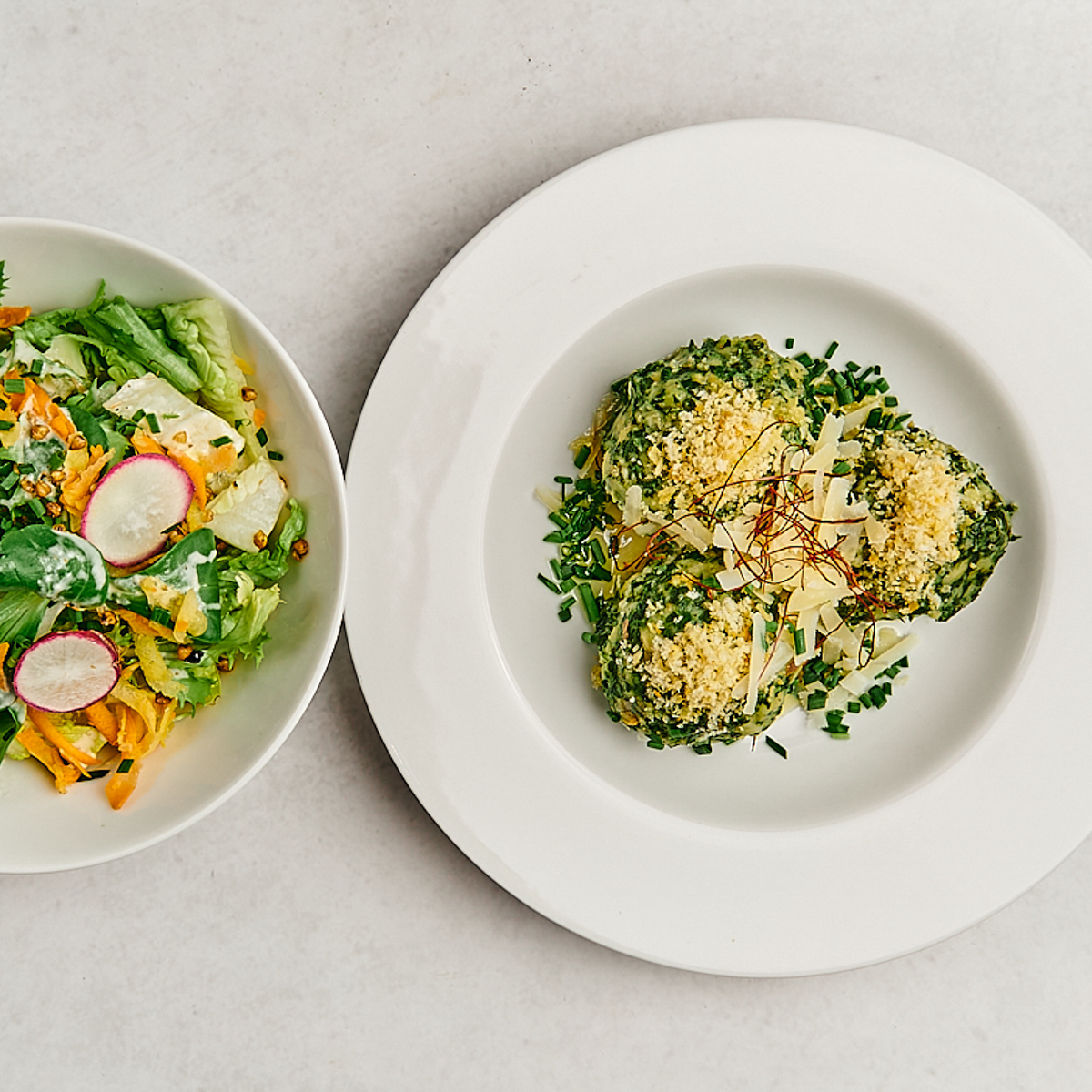 Auf der Karte stehen Klassiker der Alpenküche – modern interpretiert und, wo möglich, aus regionalen Zutaten zubereitet. Besonders empfehlenswert: das traditionelle Wiener Schnitzel vom Kalb, dünn geklopft, in goldener Panade, serviert mit klassischem Erdäpfel‑Gurken‑Salat – außen knusprig, innen zart, wie es sein muss. Vegetarische Optionen wie das Sellerie‑Schnitzel oder handgemachte Spinat‑ und Rote‑Bete‑Knödel zeigen, dass das Österelli nicht nur Fleischliebhaber glücklich macht.