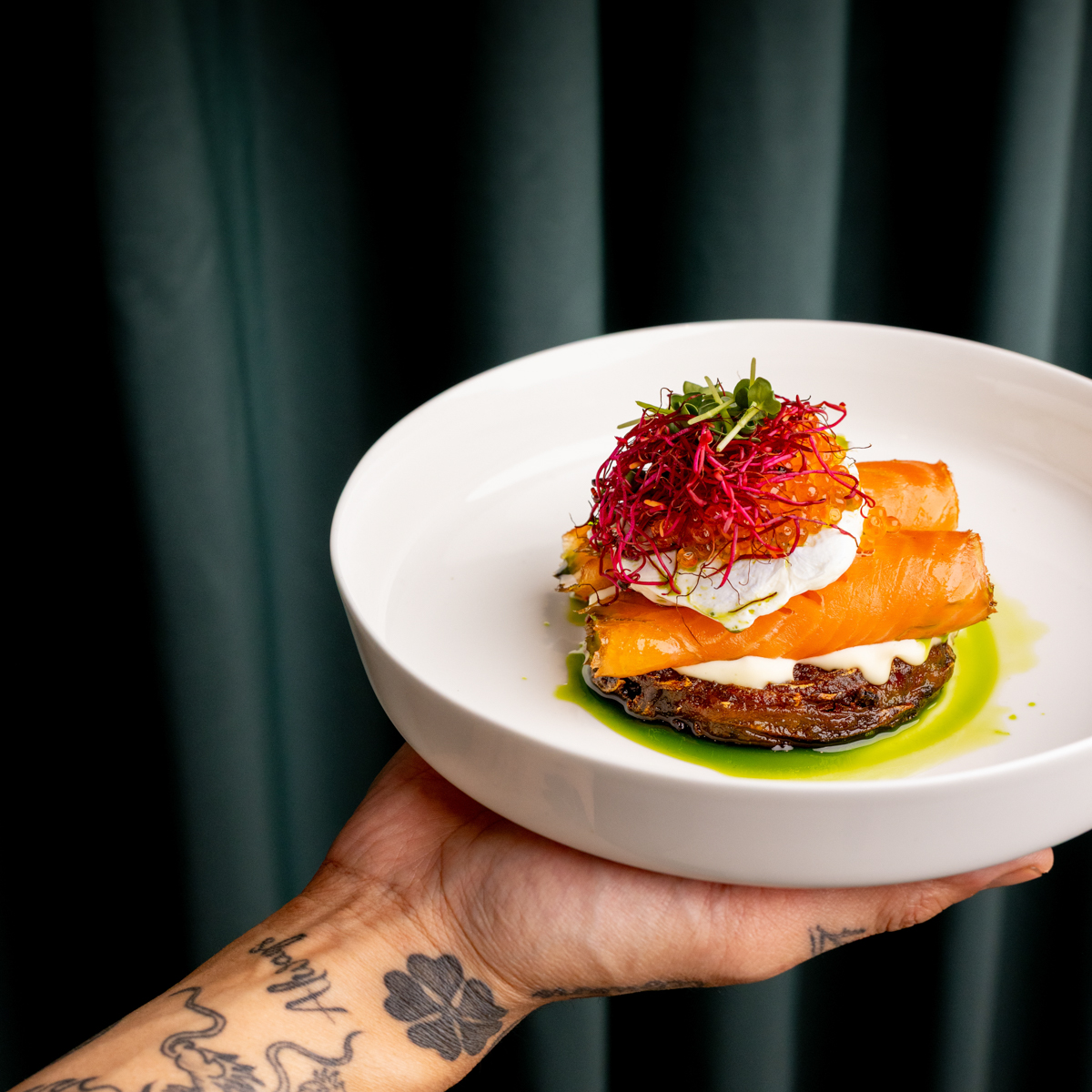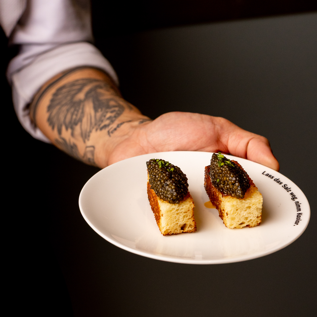 Die Karte verbindet klassische Tastings mit überraschend unkomplizierten Gerichten. Wer sich annähern möchte, startet mit einem Kaviar-Tasting – etwa mit Siberian, Ossetra oder Beluga, serviert mit Blinis und Schmand. Noch lockerer wird es bei den sogenannten Kaviarbar-Snacks: „Kaviar Bites“ auf geröstetem Brioche, „Rösti Pizza“ mit Crème fraîche und Kaviar oder „Baked Potato“ mit Kaviar-Topping greifen kulinarische Klassiker auf und veredeln sie.