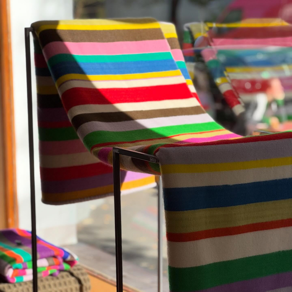 Im Zentrum des Sortiments stehen schwere, warme Wolldecken aus reiner Merinowolle, gefertigt in kleinen Familienbetrieben in Bulgarien. Jede Decke ist ein Unikat. Farben und Muster entstehen nicht am Computer, sondern intuitiv und im direkten Austausch mit den Menschen, die in den Laden kommen. Rund 100 bis 150 unterschiedliche Modelle liegen meist gleichzeitig aus. „Es gibt für jede Decke für die richtige Person“, sagt Denitsa. Und tatsächlich scheint jede irgendwann ihr passendes Zuhause zu finden.