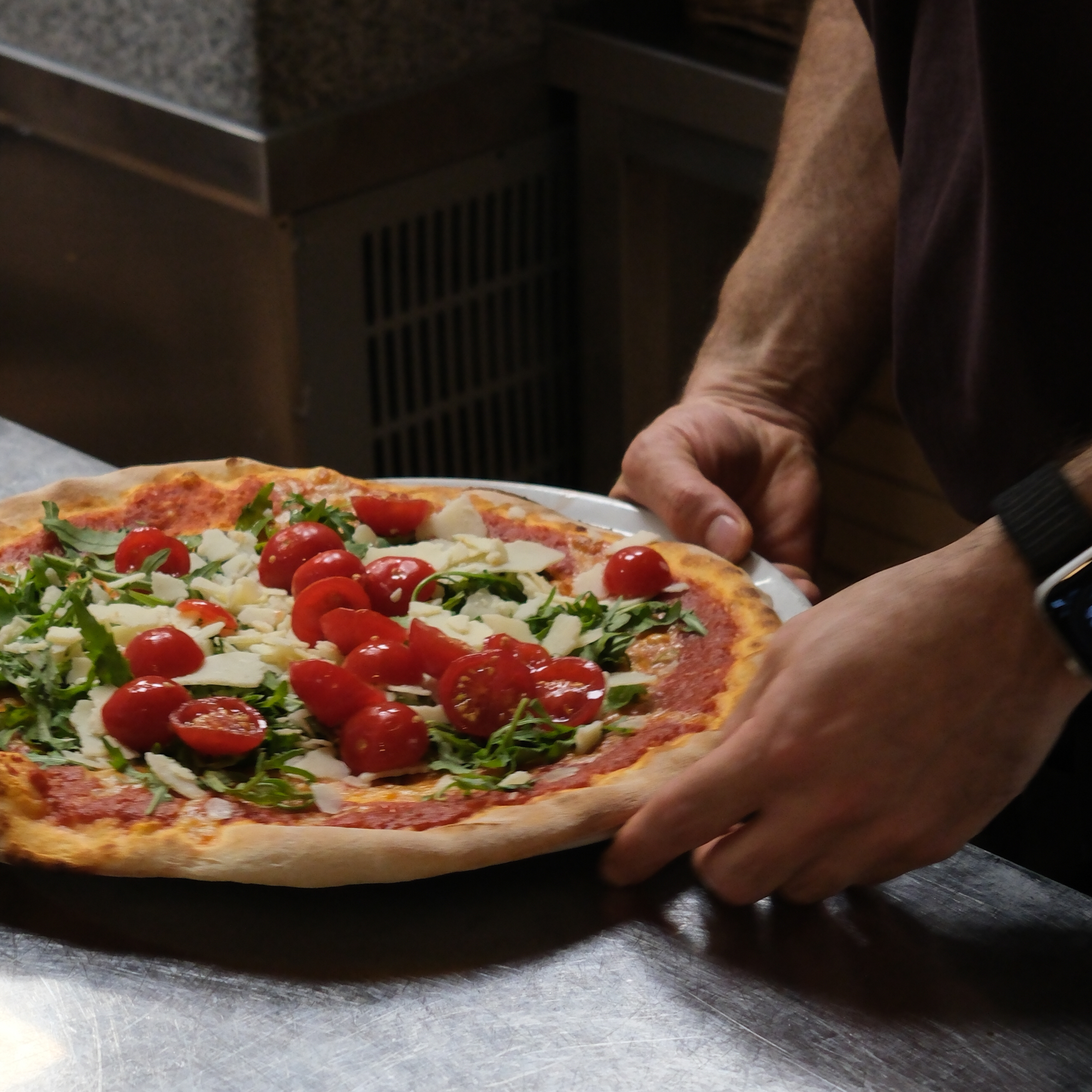 Auch im Innern geht es lebhaft zu. Die Atmosphäre ist einfach und doch einladend: karierte Tischdecken, schlichte Holzmöbel und ein sehr nettes Serviceteam. Die Speisekarte verzichtet auf Schnickschnack und modische Extravaganzen. Stattdessen stehen hier die Klassiker der italienischen Küche im Vordergrund – Pizzen mit hauchdünnem Boden, eine Auswahl an Pasta-Gerichten und saisonale Tagesgerichte, wie sie auch die Nonna servieren würde.