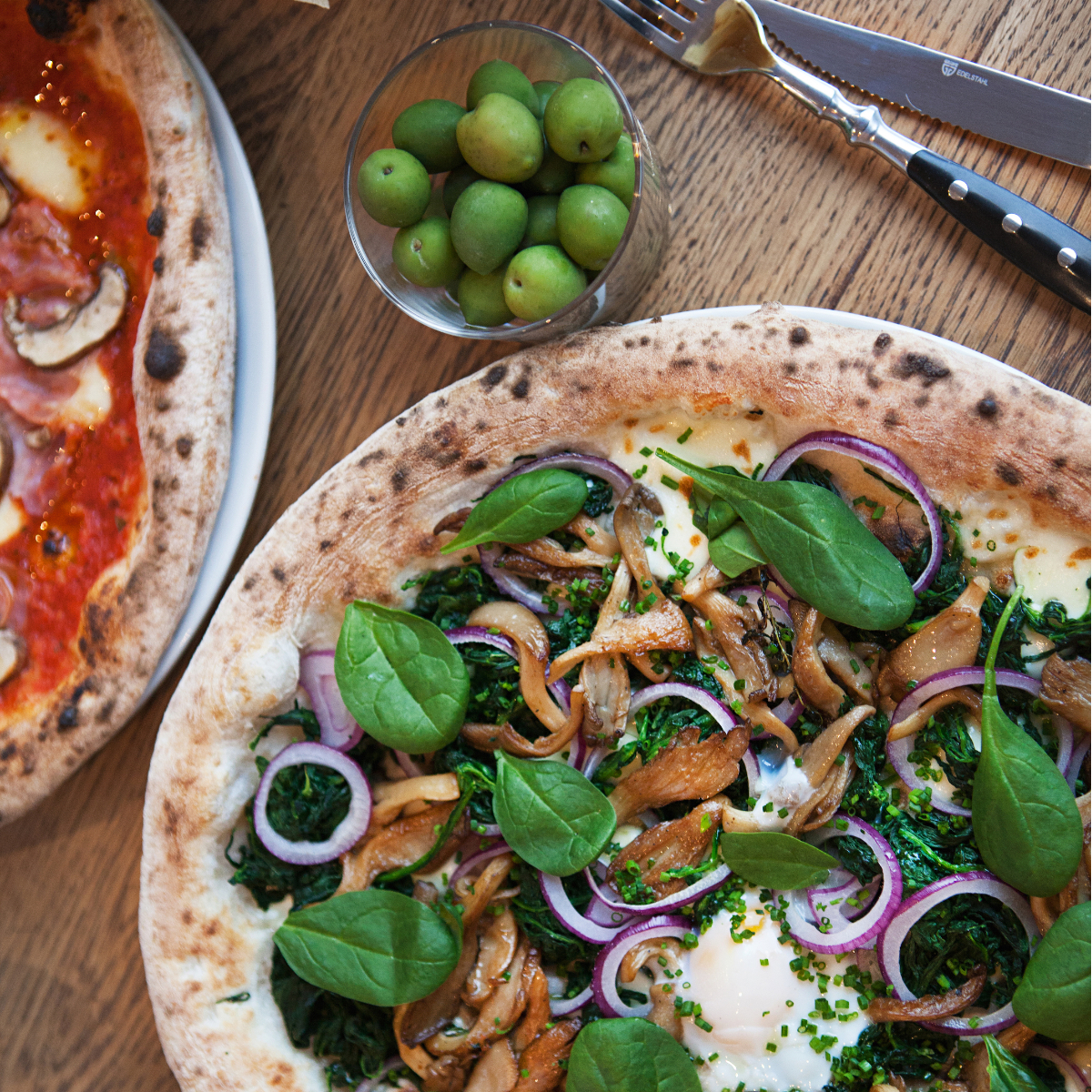 Offenbar muntern nicht nur wir uns liebend gern mit feinster Margherita, Salame und Parma auf. Beziehungsweise mit Ortolana, dank gegrilltem Gemüse und Pesto super frisch und damit eine wunderbare Ergänzung zur Pizza Mortadella mit frischer Burrata und feinen Pistazien. Vor allem aber haut uns die Della Casa Bianca mit Portobello-Pilzen, Rosmarin-Kartoffeln und Trüffel-Stracciatella vom Hocker.