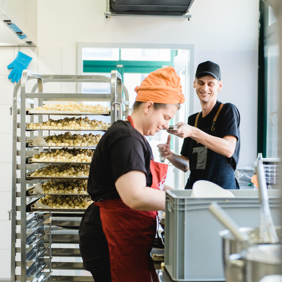 Knalle Popkorn, das sind Lucie (Lieblingssorte „Butterkaramell Tahiti-Vanille“) und André (Lieblingssorte „Barbecue Rauchmandel"). Beide arbeiteten zuvor in Berlins Spitzengastronomie und somit stehen hinter Knalle zwei Personen, die ihr Handwerk verstehen. Auf der Suche nach immer neuen Rezeptideen, stieß Christopher sie irgendwann auf die Faszination von exquisitem Popkorn – und wurde schnell Teil des Teams. Wenig später kam Johannes hinzu.