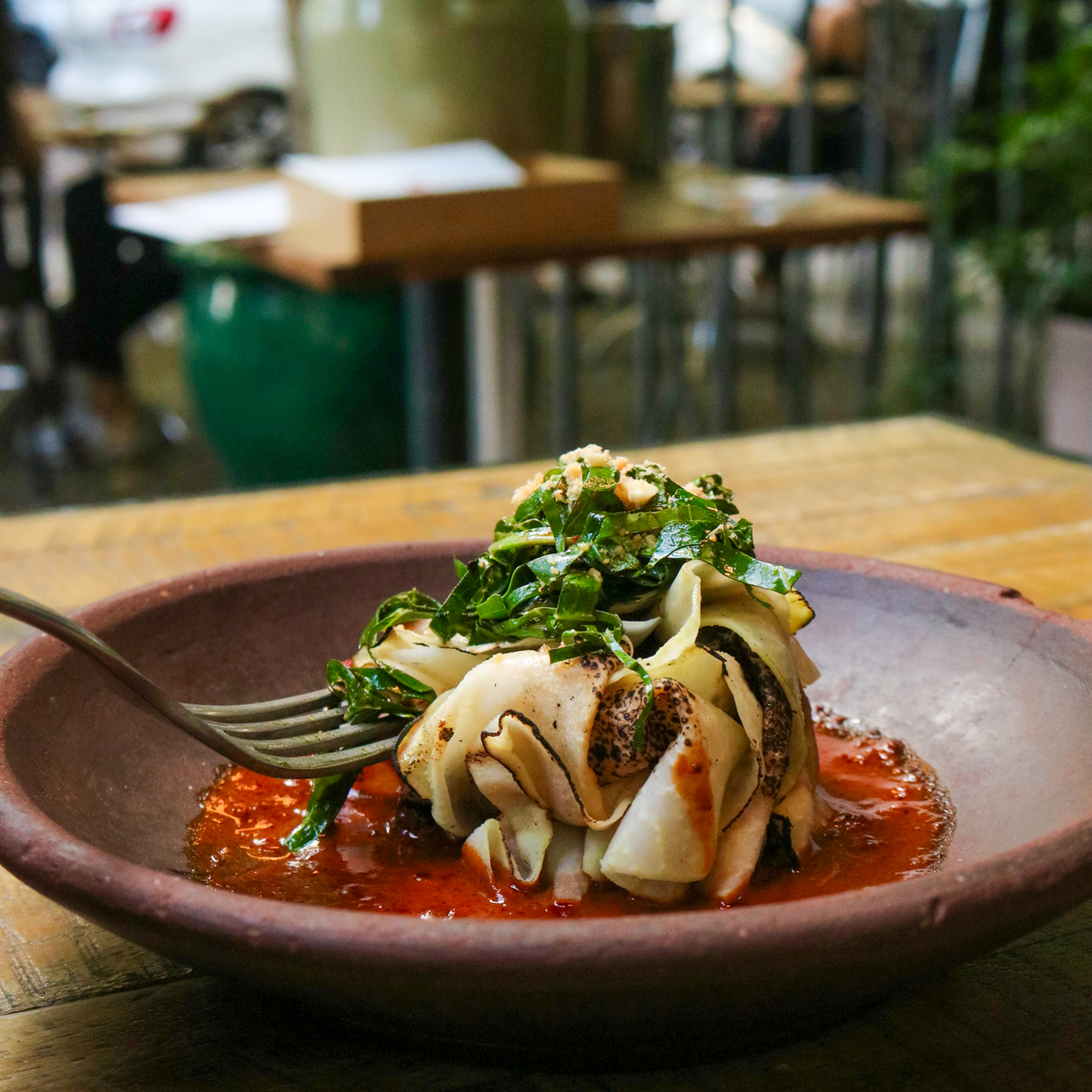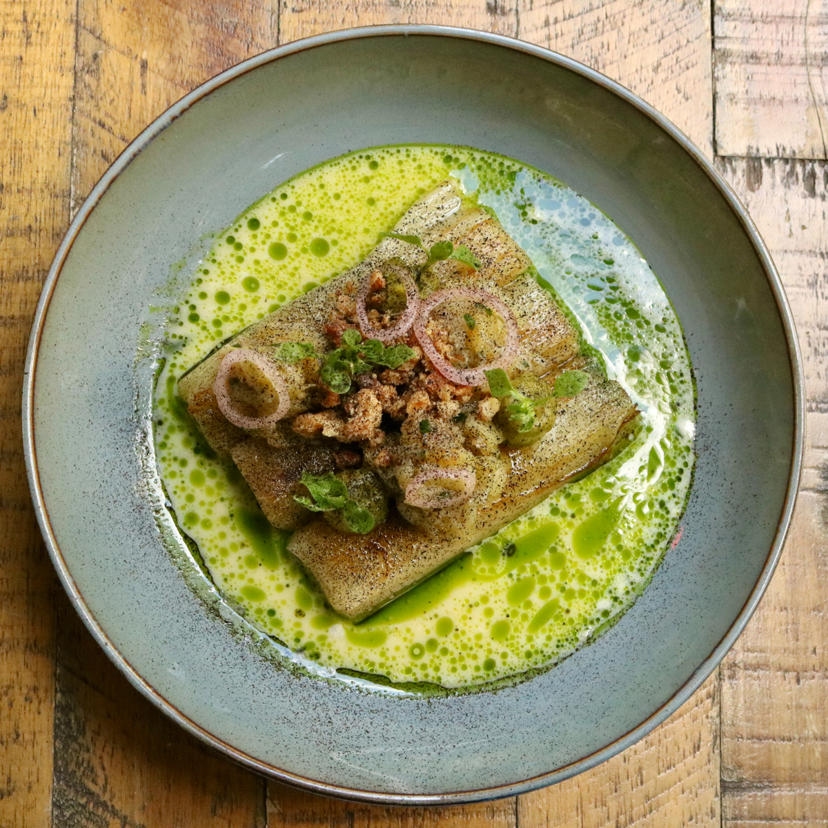 Die Speisekarte des QUI 31 ist unterteilt in die Bereiche Vegetarisch, Fisch und Fleisch. Unter den jeweils vier bis fünf Gerichten gibt es immer auch einen Pastagang – eine Reminiszenz an Franziosos Wurzeln. Als Sohn eines italienischen Gastronomen hat er früh gelernt, was es heißt, ein guter Gastgeber zu sein. Es liegt ihm sozusagen im Blut. Das stellte der Anfang 30-jährige zuvor auch äußerst charmant als Restaurantleiter der Bar Brass unter Beweis.