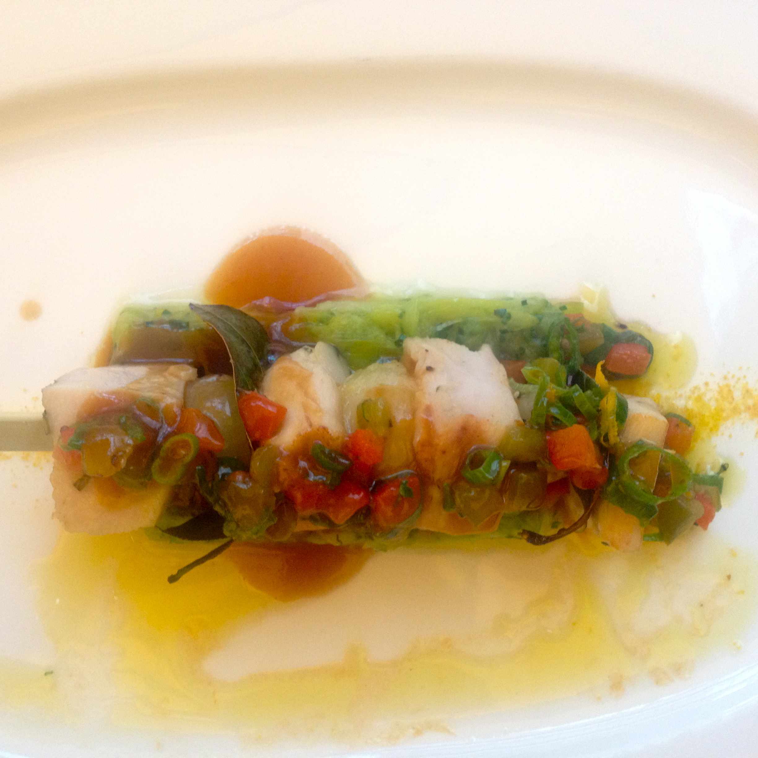 Ohne Probleme wurden meine paläolithischen Sonderwünsche hinsichtlich einer zucker-, milch- und getreidefreien Ernährung berücksichtigt und so bekamen wir jeweils zwei Varianten des Menüs serviert. Beide überzeugten gleichermaßen, wobei mir der sehr schön angerichtete Lachs besonders gut gefallen hat. An Stelle der Orangenvinaigrette war dieser mit einem Zitronenen-Öl-Dressing und fantastischen winzigen Kartoffelcroutons verfeinert. Wirklich genial, ich liebe es wenn Essen kracht!