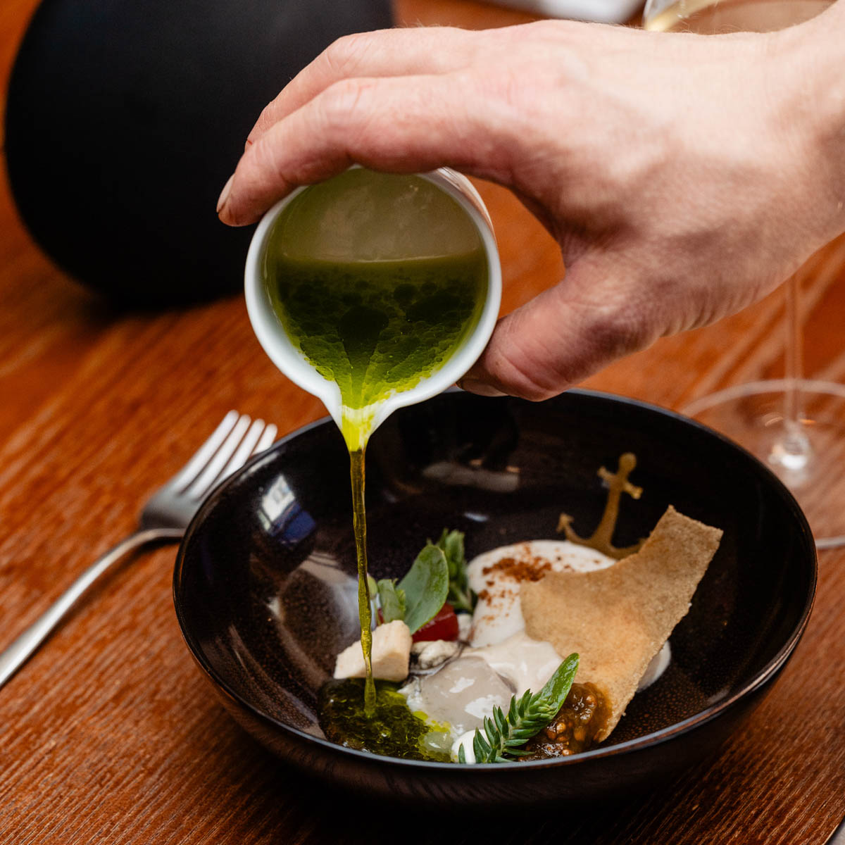 Wie viel Liebe zum Detail hier in jedem der Gerichte steckt, wird schon beim hervorragenden hausgebackenen Sauerteigbrot klar, zu dem nicht nur aufgeschlagene Butter, sondern auch ein grandioses, hausgemachtes Sauerteig-Öl gereicht wird. Lassen Sie sich bei Ihrem Besuch erklären, wie aus Traubenkernöl und den übrig gebliebenen Kanten des Hausbrotes dieses geniale Öl entsteht; es ist spannend!