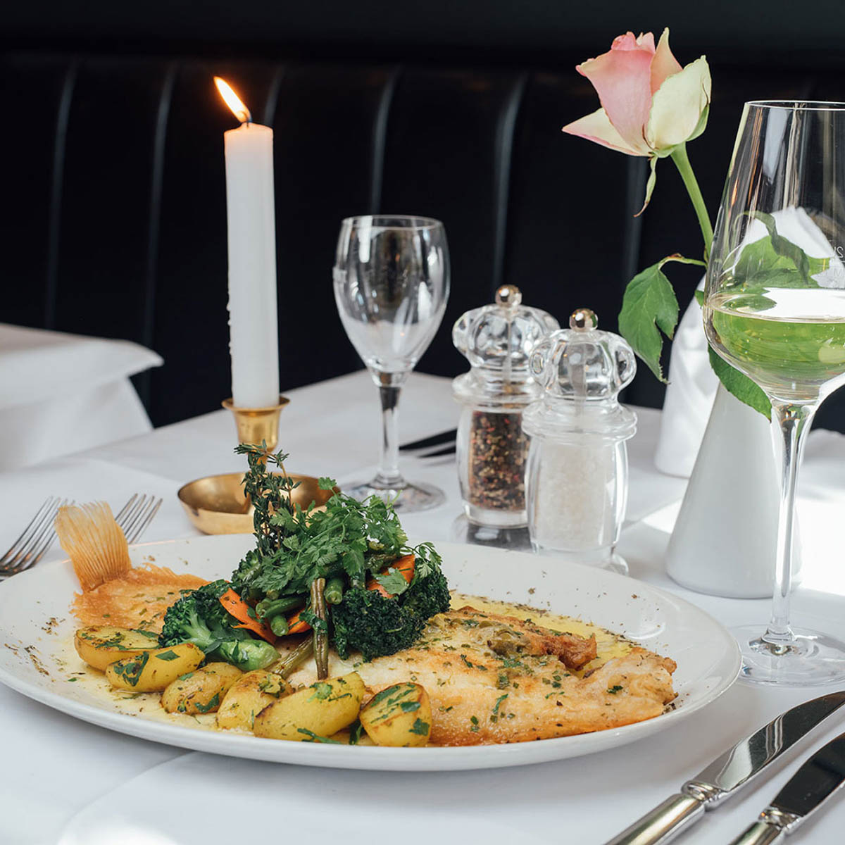 Neben wechselnden saisonalen Gerichten wartet die Karte mit Klassikern wie Weinbergschnecken in Kräuterbutter, Austern, Rindertartare mit pommes allumettes oder Entenstopfleber auf. Ebenfalls vorneweg oder als kleines Gericht zwischendurch dürfen die traditionell mit Käse gratiniere Zwiebelsuppe oder eine Fischsuppe, ganz klassisch mit Rouille serviert, natürlich nicht fehlen.