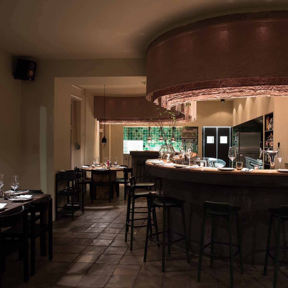 Hier treffen ein bewusst uneitles, dabei aber wahnsinnig ästhetisches Ambiente auf die karge Industriearchitektur vis-à-vis. Ältere Herrschaften auf junge Szeneleute. Neukölln auf Mitte. Innen auf außen. Hervorragende Küche auf kluge Drinks. Restaurant auf Bar. – Alles findet Platz unter dem Dach des Tisk. – Und genau das war der Plan.