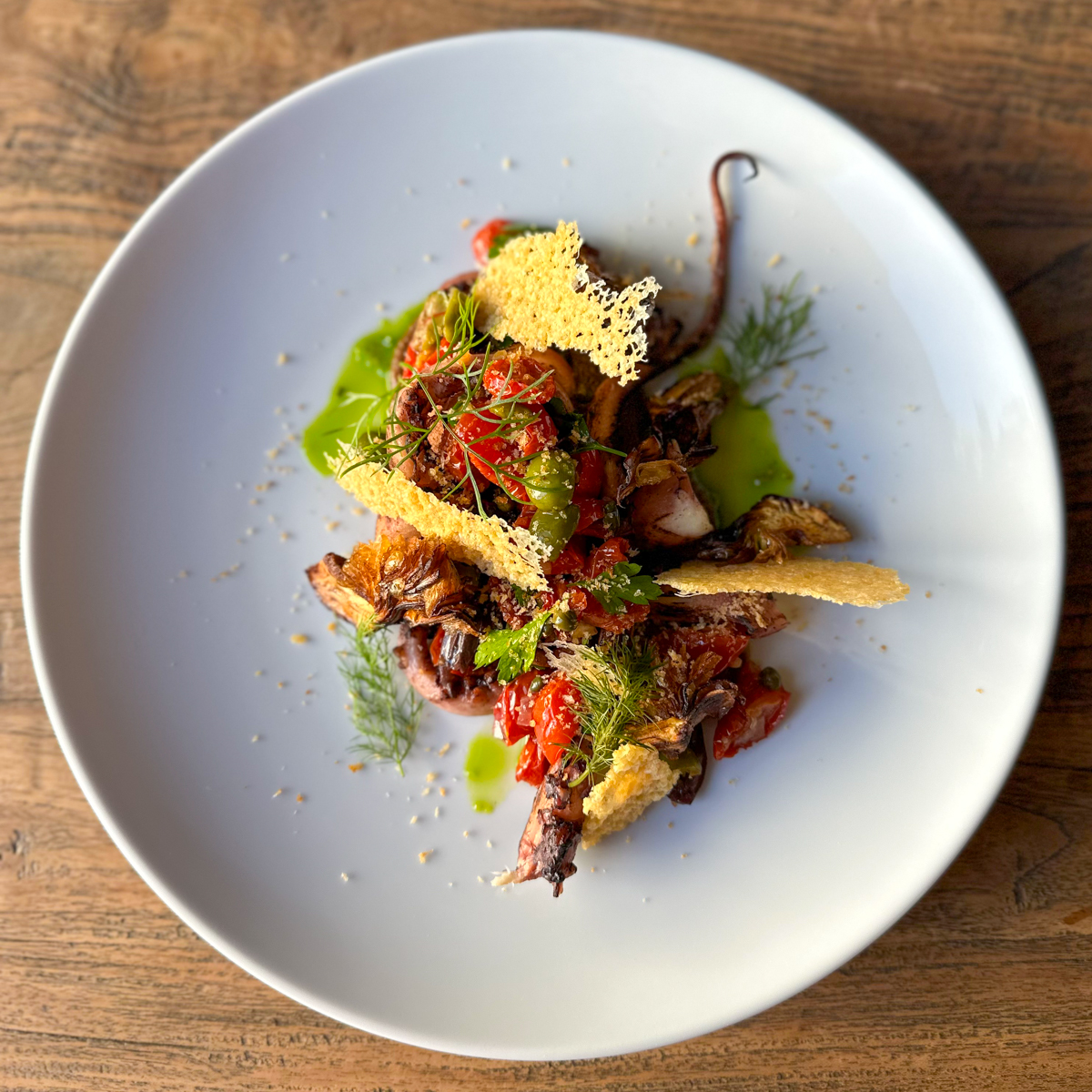 Im Restaurant Vera – übrigens der Name seiner italienischen Nonna – serviert er nun gemeinsam mit Julien Walter als Gastgeber eine raffiniert-kreative Küche, in der sein amerikanisch-italienisches Erbe bisweilen auch mal durchblitzt. Auf der kleinen saisonalen Karte finden sich in der Regel je drei Vor- und Hauptspeisen sowie zwei Desserts.