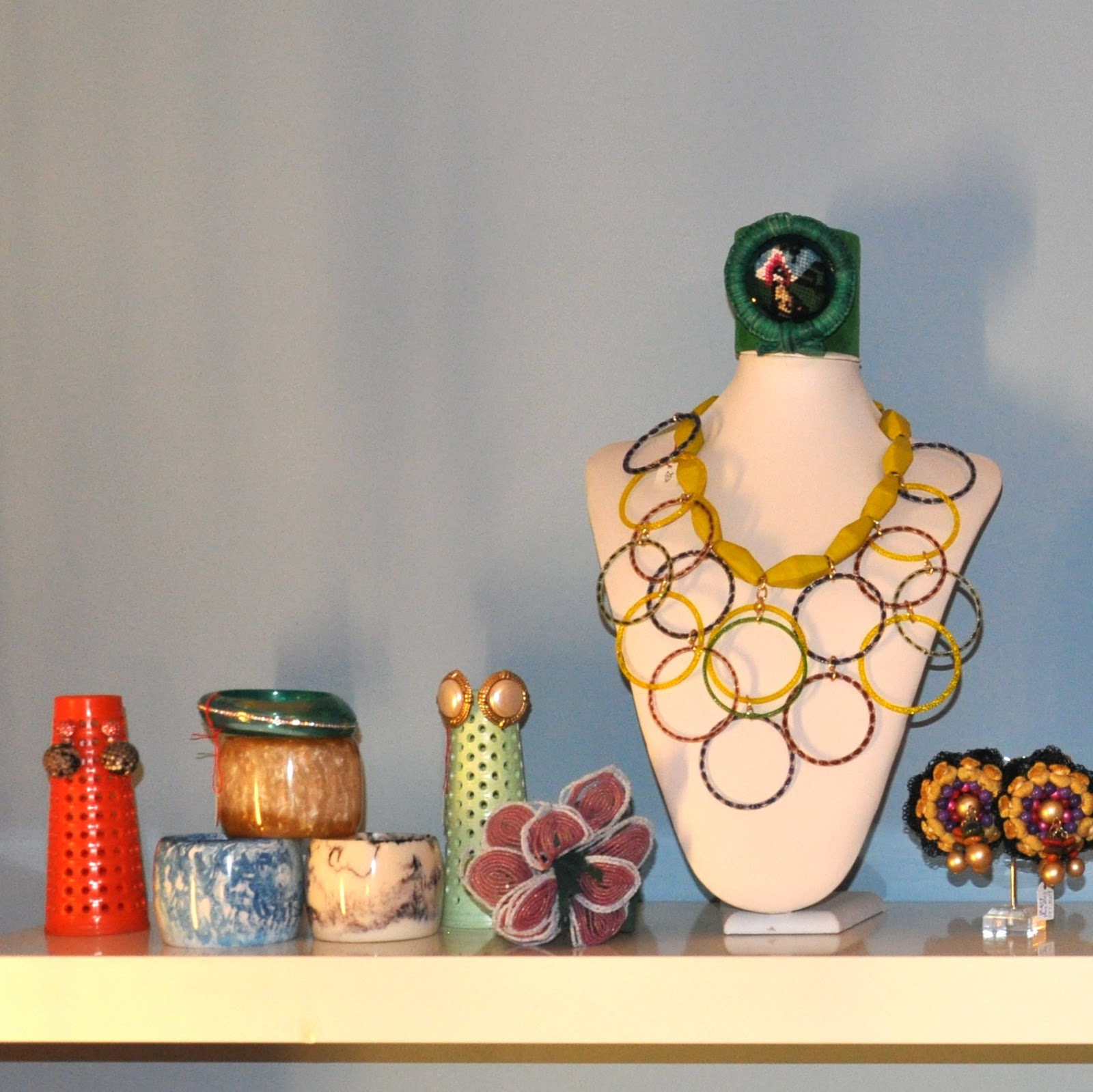 Hier reihen sich Taschen, Schuhe und Fashion so namenhafter Labels wie Cardin, Lanvin oder Yves Saint Laurent an fantastische Schmuck Kreationen von Rianna´s Mutter Käthe Lilo und eine Vielzahl ungewöhnlicher Einzelteile aus der Welt des Interiors.
